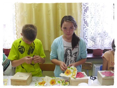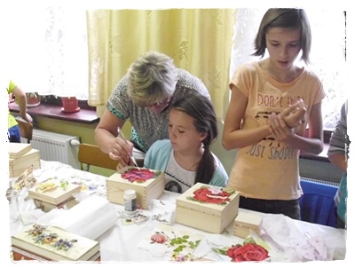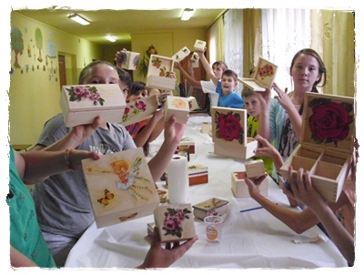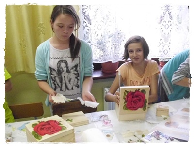 18 września uczniowie klas 4-6 szkoły podstawowej brali udział w warsztatach decoupage, zorganizowanych na terenie naszej szkoły przez Koło Gospodyń Wiejskich z Choczni. Piętnastoosobowa grupa ochotników całe popołudnie twórczo pracowała pod życzliwym okiem instruktorek: p.Małgorzaty Pawińskiej, p.Zofii Świętek oraz p.Doroty Gazdy. Nowa technika przyozdabiania tak bardzo się wszystkim spodobała, że już zaplanowano drugie spotkanie - warsztaty zdobienia bombek świątecznych.Warsztaty zostały zorganizowane z funduszy inicjatyw obywatelskich.