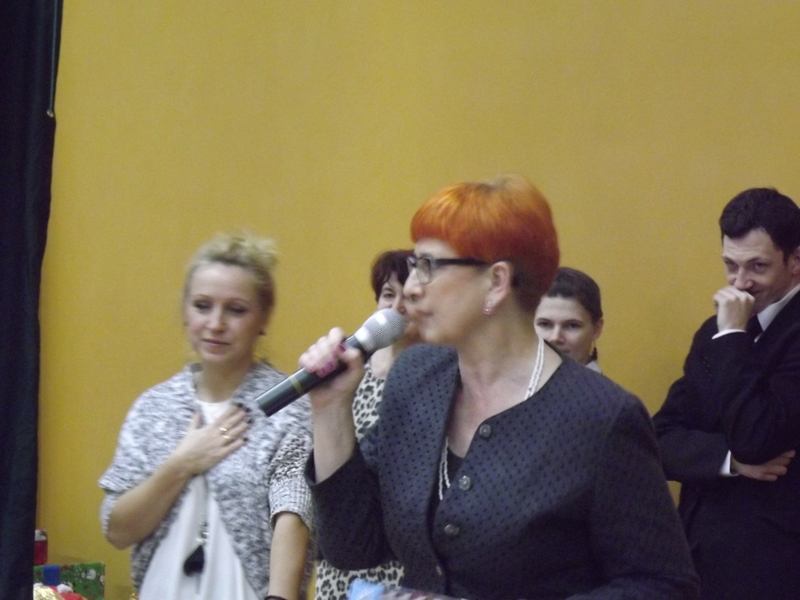 Pani Dyrektor Małgorzata Bryndza i współorganizatorka spotkania pani Bogumiła Kowalczyk, dziękując za piękny występ, nie kryły wzruszenia. Po obejrzeniu przedstawienia wszyscy uczniowie z naszej szkoły zaśpiewali pastorałkę „Skrzypi wóz”. Na gitarze przygrywał nauczyciel muzyki pan Zbigniew Kolber. Na zakończenie zrobiliśmy sobie pamiątkowe zdjęcie integracyjne i już nie możemy się doczekać następnego spotkania.