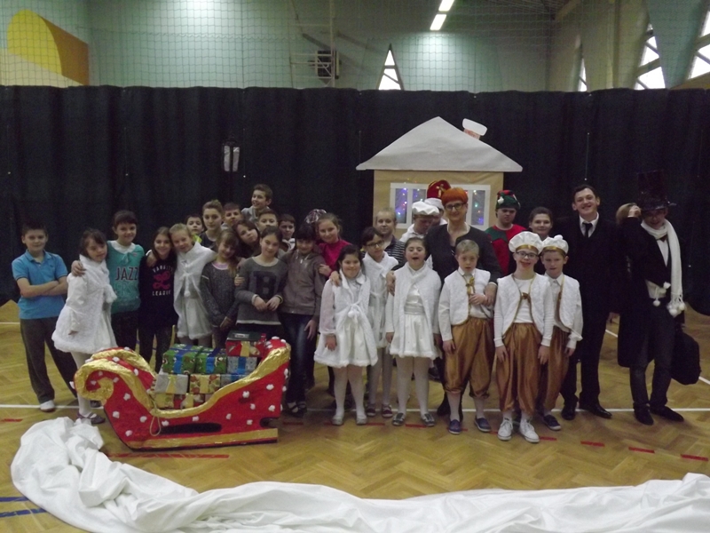 W piątek 23 stycznia 2015 r. gościliśmy w naszej szkole wychowanków SOSW z Kaczyny, którzy pod kierunkiem opiekunów zaprezentowali piękne widowisko słowno - muzyczne na motywach „Opowieści Wigilijnej”. Atrakcyjne stroje, pomysłowa dekoracja, nastrojowa muzyka i emocjonalne zaangażowanie dzieci sprawiły, iż było to niezwykłe przeżycie dla uczniów i wszystkich pracowników naszej placówki.