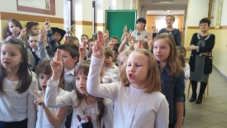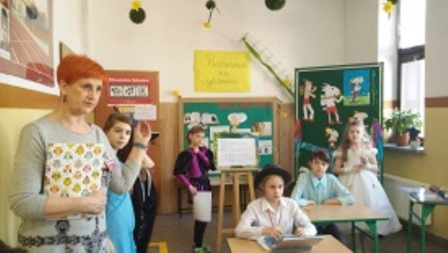 W piątek, 20 marca 2015 roku, w naszej szkole, zgodnie z coroczną tradycją, odbyło się uroczyste pasowanie na czytelnika przygotowane przez nauczyciela bibliotekarza panią Bogumiłę Kowalczyk wraz z członkami szkolnego koła teatralnego i bibliotecznego z klasy IV i V. Na ww. imprezę została zaproszona pani dyrektor Małgorzata Bryndza, pani pedagog Grażyna Curzydło, i przede wszystkim uczniowie z klas I a i I b wraz z wychowawcami, panią Marią Michulec i panią Barbarą Kołodziejczyk. Pierwszoklasiści ustawieni w pociąg na korytarzu, przy wtórze fragmentów słynnego wiersza Juliana Tuwima pt. "Lokomotywa", poruszali się wolno w kierunku biblioteki. Po drodze napotykali przeszkody w postaci zagadek literackich w wykonaniu członków koła teatralnego przebranych za znane postacie z bajek. Po dotarciu na miejsce, przed drzwiami biblioteki, czekały na dzieci jeszcze dodatkowe atrakcje: krzyżówka, opowiadanie i krótka inscenizacja "Jak powstaje książka",a także piosenka o bibliotece itp. Nasi młodzi czytelnicy złożyli uroczyste przyrzeczenie, że będą wypożyczać i szanować książki, oraz spełniać wszystkie ich prośby i życzenia, które przedstawiła uczennica przebrana za książkę. Na pamiątkę uroczystego przyjęcia w poczet czytelników pierwszoklasiści otrzymali "identyfikator czytelnika" i słodki upominek. Po uroczystości dzieci przeszły do biblioteki i wypożyczyły swoje pierwsze książeczki. W wyborze pomagały im uczennice kl. V- członkinie koła bibliotecznego. Od dzisiaj biblioteka pozyskała nowych czytelników, których serdecznie zapraszamy do częstych odwiedzin.