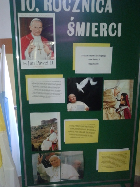 Jeszcze przed wiosenną przerwą świąteczną uczniowie naszego gimnazjum uczcili 10 rocznicę śmierci św. Jana Pawła II. Gimnazjaliści wspominali najważniejsze treści z nauczań Papieża oraz nawiązali do Jego Testamentu.