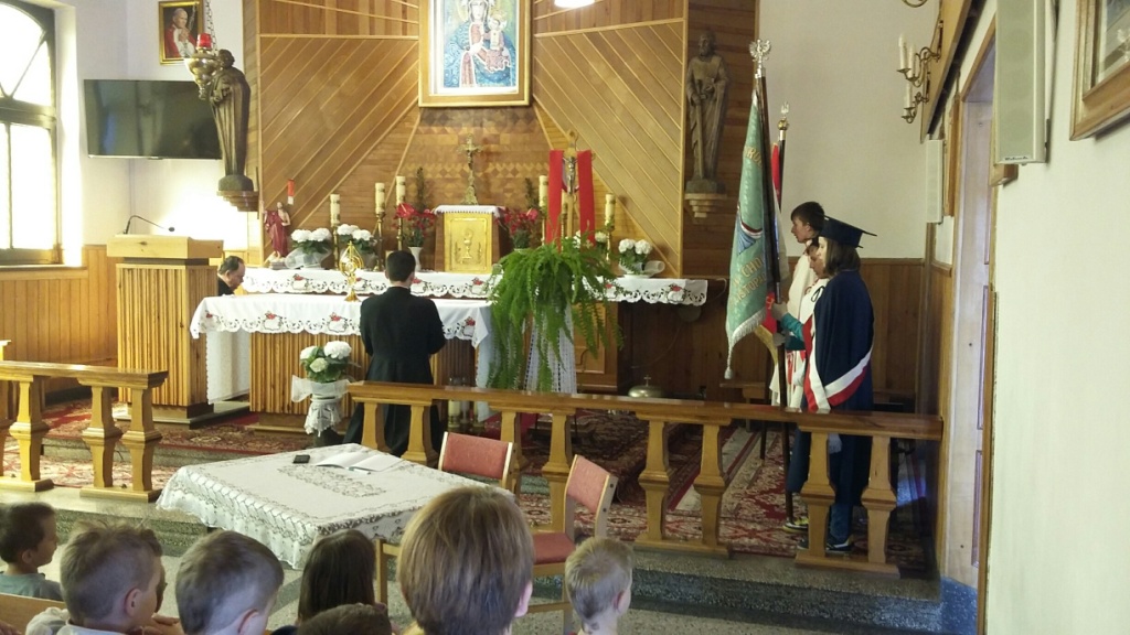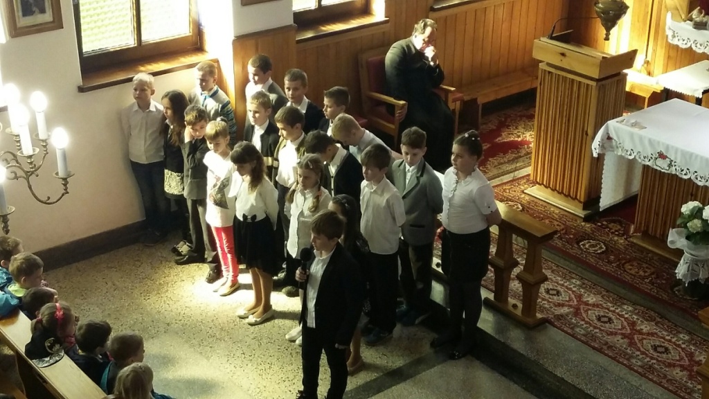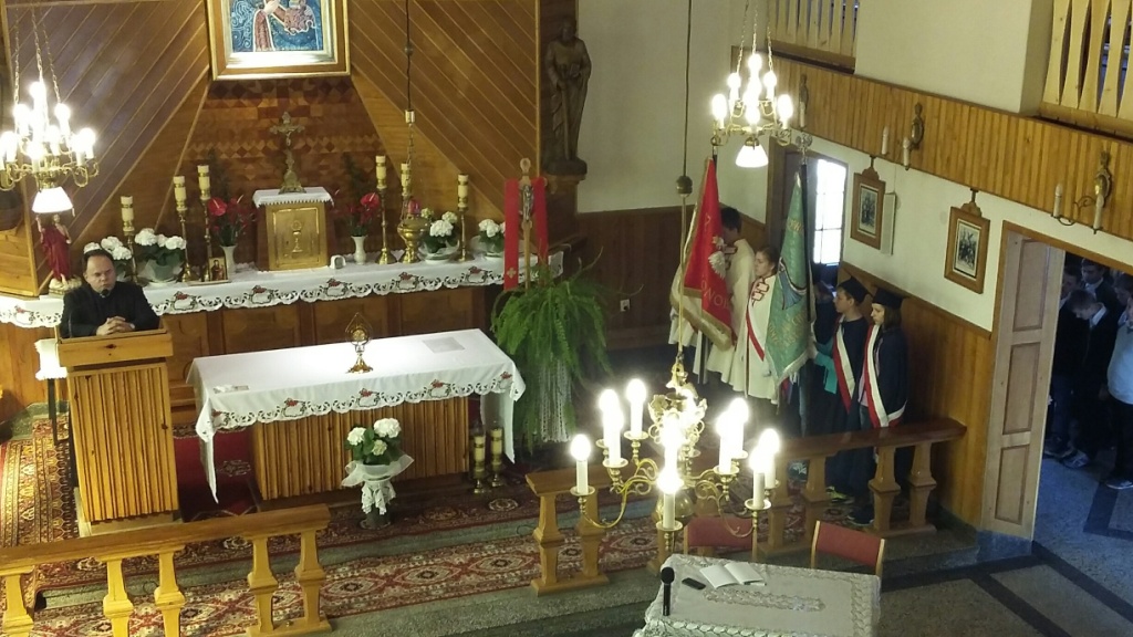 27 kwietnia 2015 roku świętowaliśmy I rocznicę kanonizacji patrona naszego gimnazjum Św. Jana Pawła II. Uczciliśmy ją nabożeństwem połączonym z krótką inscenizacją, przygotowaną przez księdza Roberta Młynarczyka i klasę IV szkoły podstawowej. Uroczystość odbyła się w Kaplicy pod wezwaniem Matki Boskiej Częstochoweskiej w Choczni Górnej. W spotkaniu modlitewnym uczestniczył ksiądz proboszcz Zbigniew Bizoń, który na tę okoliczność przywiózł z kościoła parafialnego relikwie Św. Jana Pawła II. Obecni byli uczniowie wszystkich oddziałów naszego zespołu, dyrekcja oraz nauczyciele.