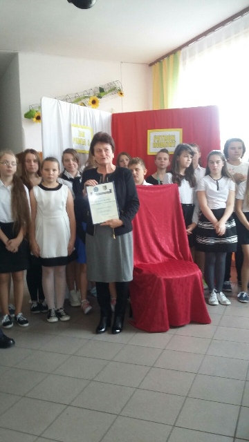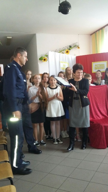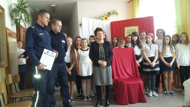 26 października do naszej szkoły przyjechał Komendant Policji w Wadowicach młodszy inspektor Piotr Dziekanowski oraz naczelnik wydziału prewencji komisarz Sławomir Urbanowski aby wręczyć szkole certyfikat Szkoły Promującej Bezpieczństwo, który został przedłużony na następne 5 lat, do roku 2020. Certyfikat odebrała pani dyrektor Małgorzata Bryndza.