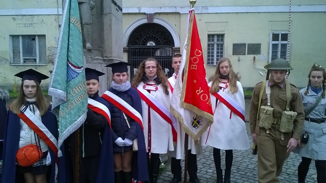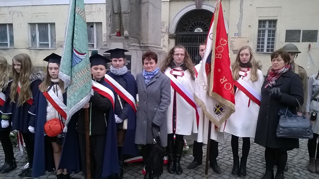 11 listopada delegacja szkoły z panią dyrektor Małgorzatą Bryndzą, opiekunami samorządów: panią Bogumiłą Gregorczyk, panią Martą Zolik oraz panem Zbigniewem Kolbrem oraz pocztami sztandarowymi uczestniczyła we Mszy Świętej w intencji Ojczyzny, w Kościele pod wezwanim Św. Piotra Apostoła w Wadowicach. Po mszy nastąpił przemarsz pod pomnik XII Pułku Piechoty, gdzie delegacje, w tym i ta z naszej szkoły, złożyły kwiaty.