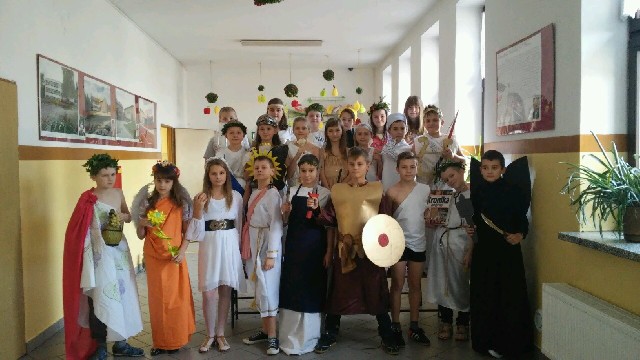 We czwartek 26 listopada uczniowie klasy V przenieśli nas w magiczny świat greckich bogów na Olimp. Podczas zajęć języka polskiego prowadzonych przez panią dyrektor Małgorzatę Bryndzę piątoklasiści zapoznali się z najciekawszymi mitami, przedstawiającymi greckich bogów i bohaterów. Każdy otrzymał jeden z mitów i wcielił się w postać bohatera danej opowieści. Był więc Zeus, Hades i Posejdon, Hera, Hestia i Demeter, Ares i Atena, Apollo, Helios, Kora- Persefona, Dionizos, Afrodyta, Hefajstos, Herakles, Prometeusz i wielu, wielu innych.