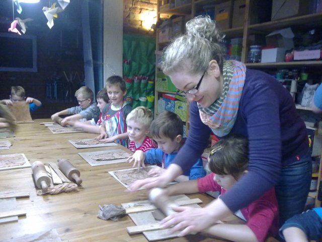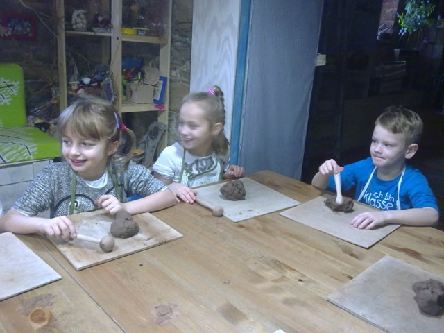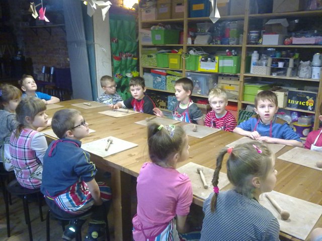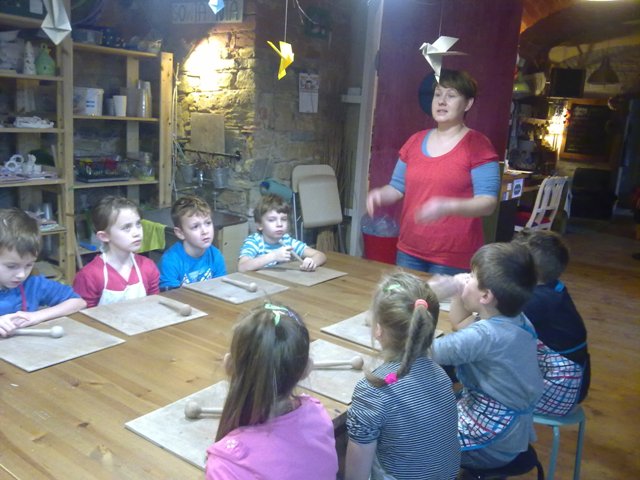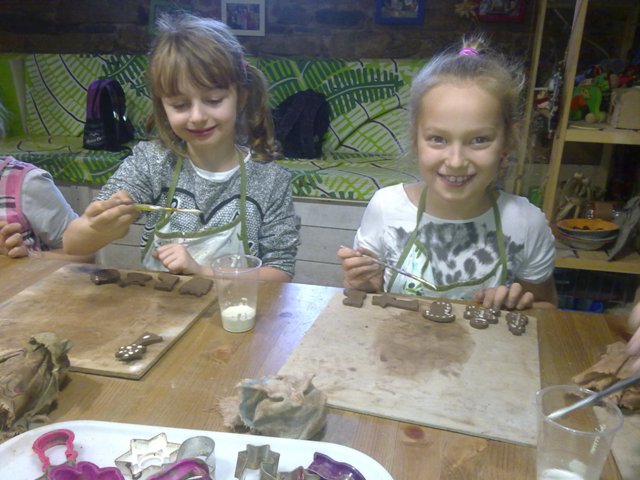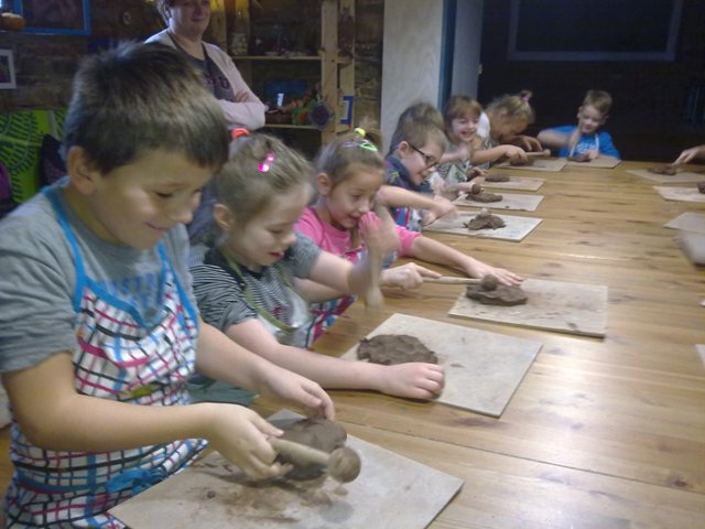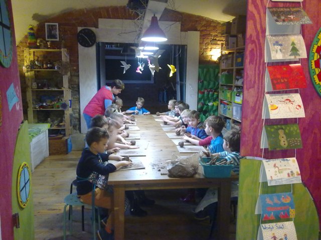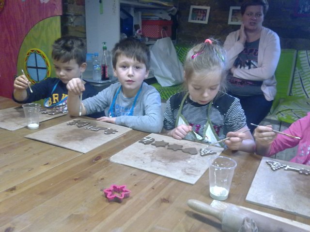 4 grudnia uczniowie klasy II b uczestniczyli w warsztatach ceramicznych zorganizowanych w Sowiarnii w Wadowicach. Z ciekawością wysłuchaliśmy Pani prowadzącej o tym nietypowym zajęciu jakim jest lepienie z gliny. Każdy uczestnik ubrany w fartuszek dostał kule z „czekoladowej gliny ”i zabrał się do ciężkiej pracy. Dzieci bowiem same musiały przygotować glinę, aby była miękka i nadawała się do formowania. Z wielkim zapałem i energią mali artyści ugniatali, ubijali, wałkowali i tłukli swoje kawałki, aby w efekcie powstały piękne ozdoby choinkowe. Każdy sam ozdobił pięknym, białym wzorkiem swoja ozdobę, która następnie czekała na wypalenie w specjalnym piecu. Warsztaty były super, wszyscy pracowali wytrwale i w skupieniu. Na koniec była niespodzianka – prezent od Świętego Mikołaja. Dziękujemy za niesamowite wrażenia. Na pewno wrócimy do Sowiarni.