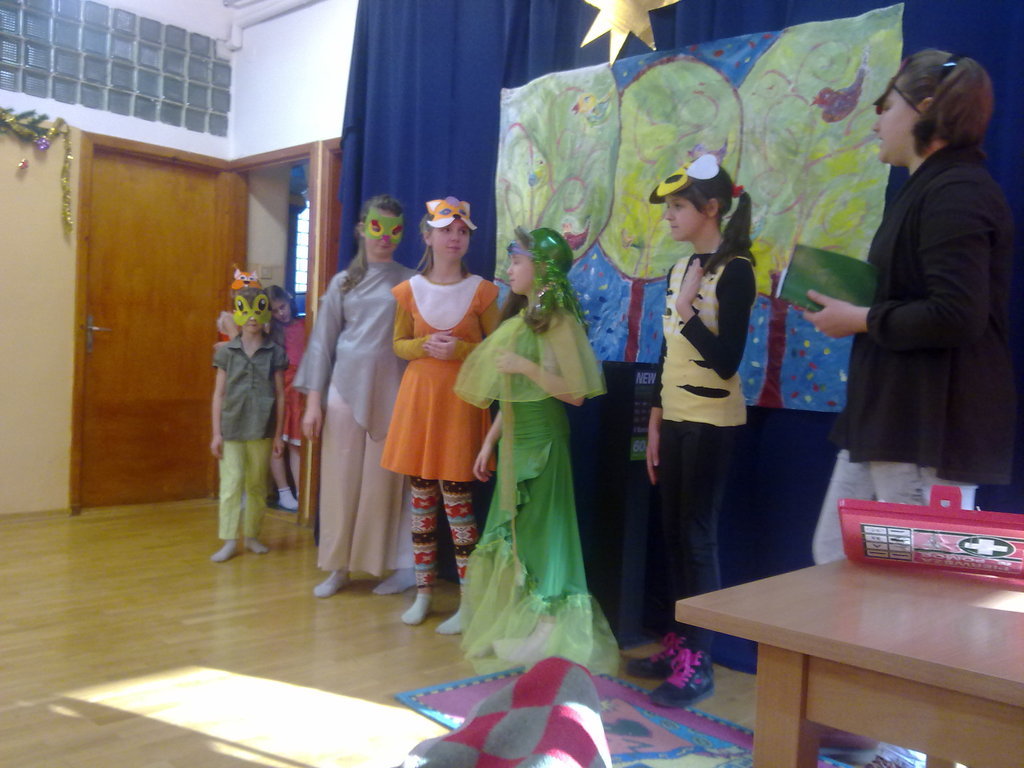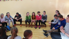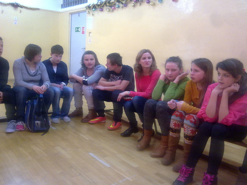 W środę 16.12.2015 r. członkowie koła teatralnego "Sówki" pod opieką pań B.Kowalczyk i G.Curzydło odwiedzili dzieci i młodzież z zaprzyjaźnionego Specjalnego Ośrodka Szkolno - Wychowawczego w Kaczynie. Nasi młodzi aktorzy zaprezentowali przedstawienie pt. "Wielka Orkiestra Leśnej Pomocy", którego głównym przesłaniem jest pomaganie sobie w trudnych życiowych sytuacjach. Publiczność z dużym zainteresowaniem śledziła losy bohaterów przedstawionej bajki i swoje zadowolenIe wyraziła za pomocą gromkich braw. Podsumowaniem występu było wysłuchanie nagrania w wykonaniu znanych polskich artystów pt. "Pomaganie jest trendy". Na koniec tego miłego spotkania integracyjnego wręczyliśmy świąteczny upominek oraz złożyliśmy sobie życzenia. Panie wychowawczynie również miały dla nas niespodziankę w postaci pięknych świątecznych bombek dla każdego uczestnika, wykonananych własnoręcznie przez starszych podopiecznych ośrodka. Miłym uwieńczeniem tych odwiedzin było wspólne godzinne kolędowanie.