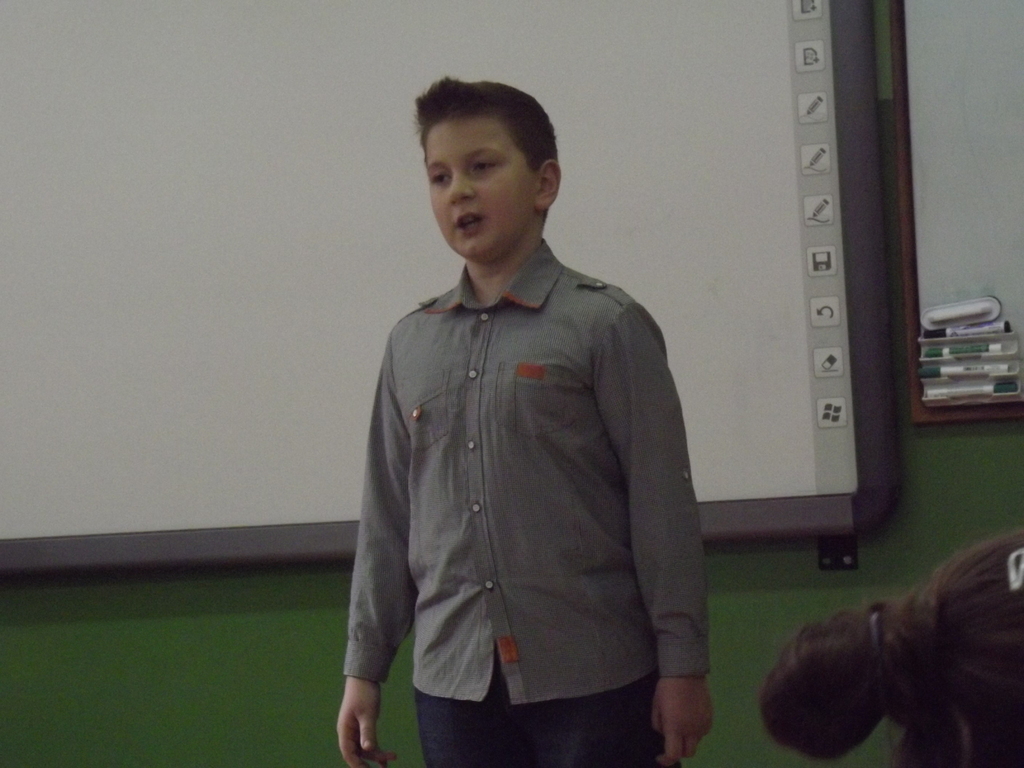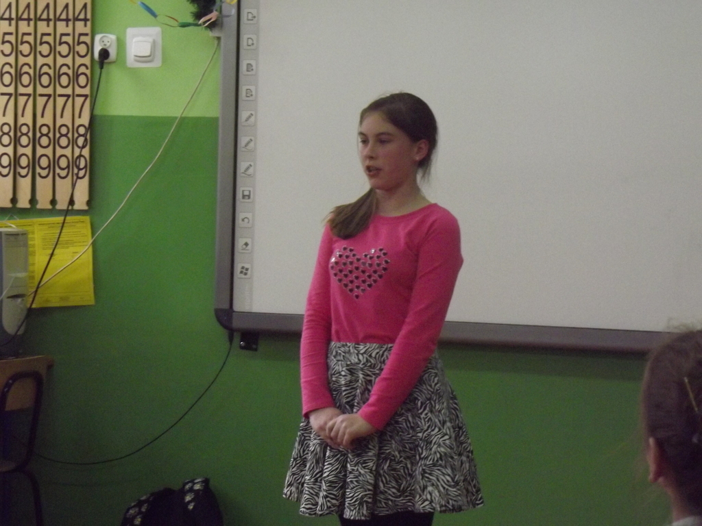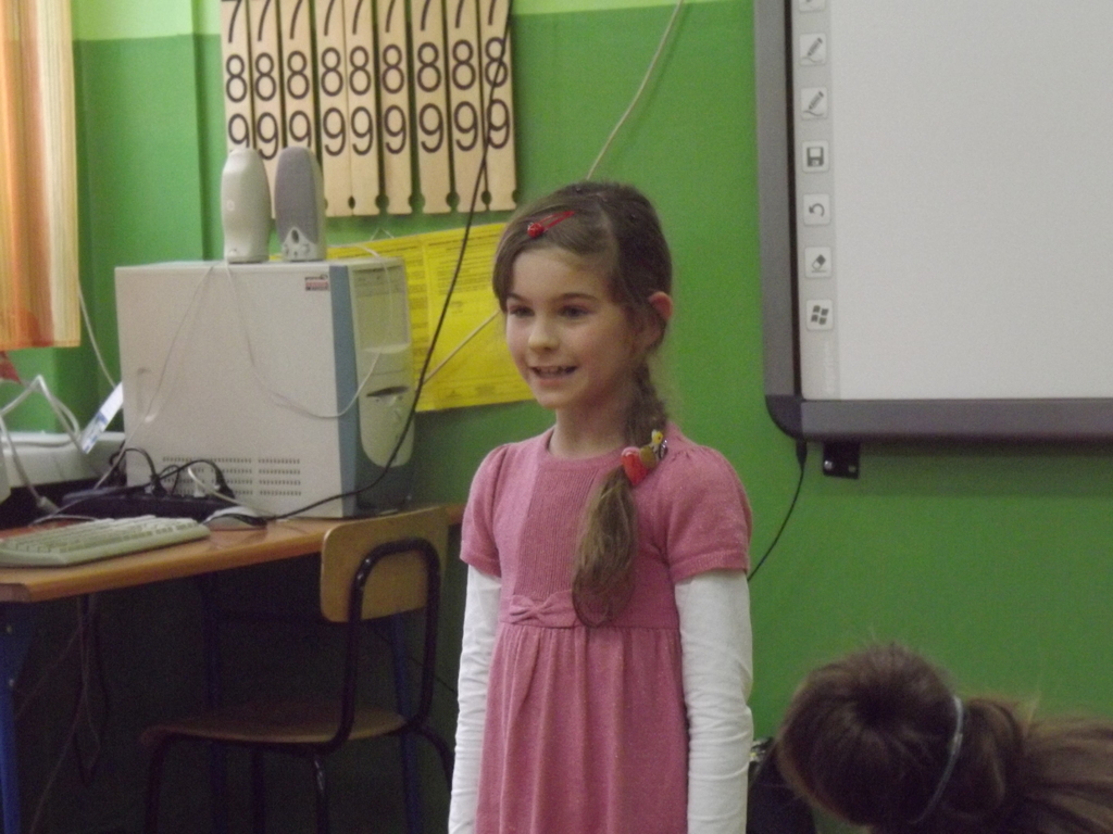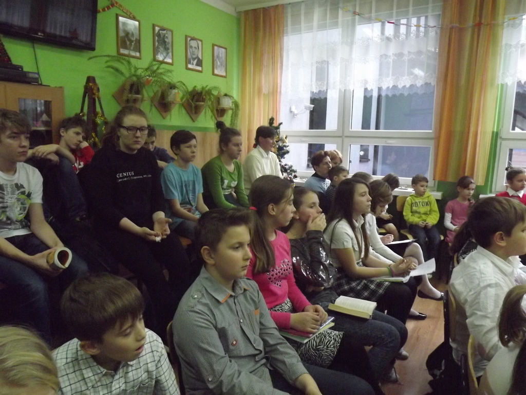 W czwartek, 17 grudnia 2015 roku, w naszej szkole odbył sią konkurs recytatorski. Łącznie brało w nim udział 36 uczestników. W kategorii klas 0 - III wystapiło 16 dzieci, w kategorii IV - VI - 15, natomiast klasy gimnazjalne reprezentowało 5 uczennic. Uczestnicy z klas młodszych prezentowali jeden bądź dwa wiersze, a starsi uczniowie recytowali 1 wiersz i fragment dowolnie wybranej przez siebie prozy. Komisja w składzie: pani Bogusława Bąk, pani Bogumiła Gregorczyk i pani Bogumiła Kowalczyk, nie miała większych problemów z wyłonieniem najlepszych recytatorów. Brano pod uwagę nie tylko sposób wysławiania się, ale także odpowiedni strój, dobór repertuaru i ogólną prezencję uczestnika.