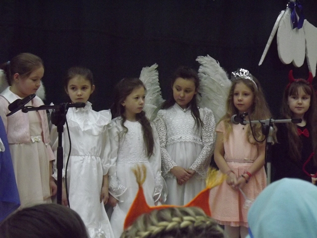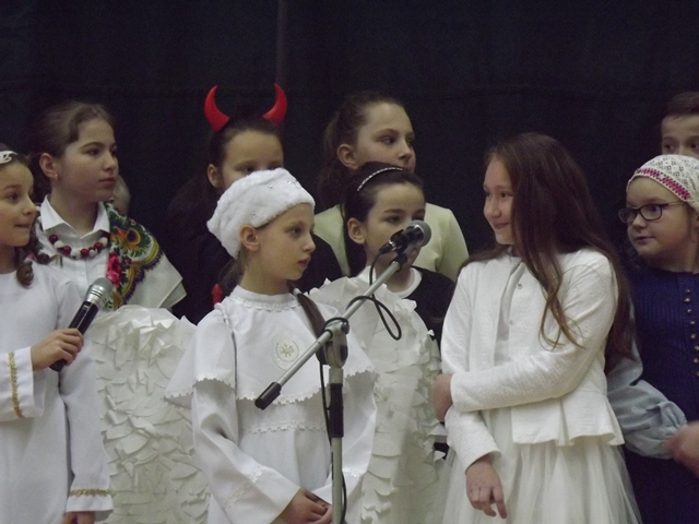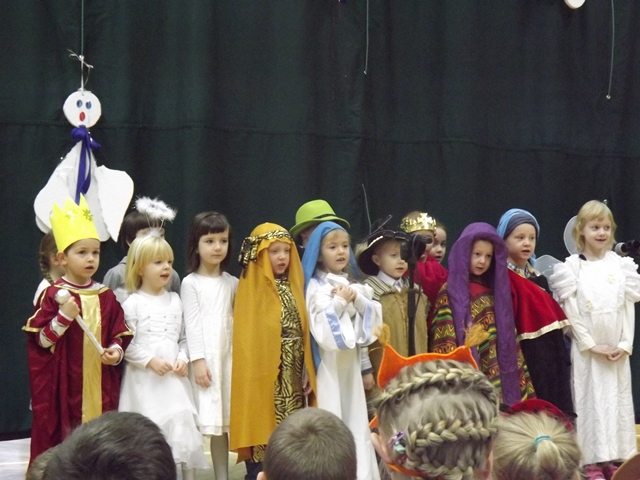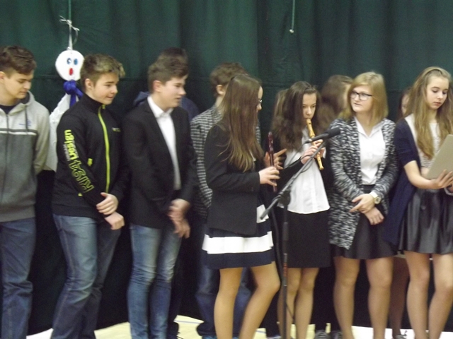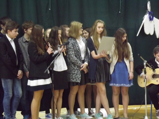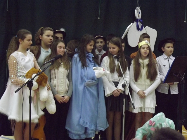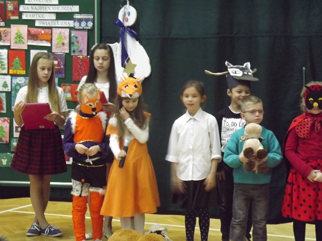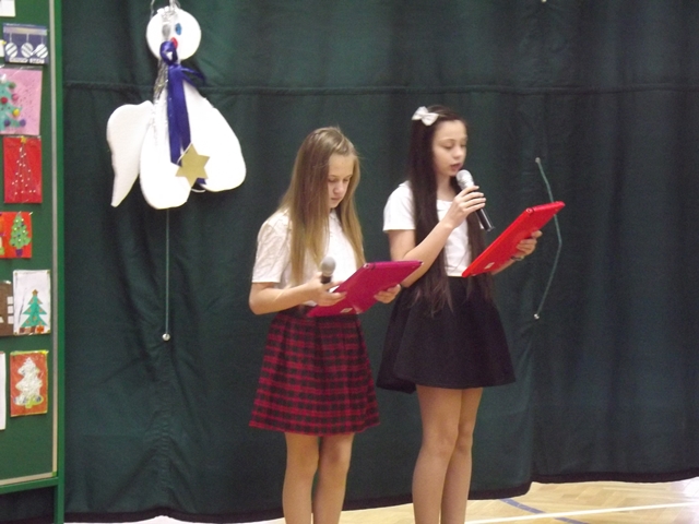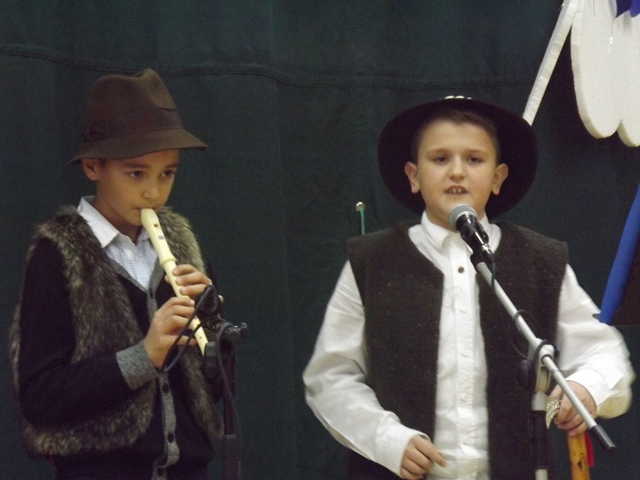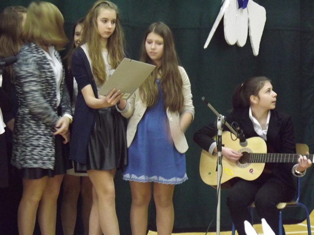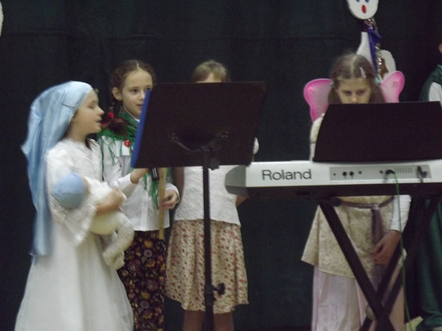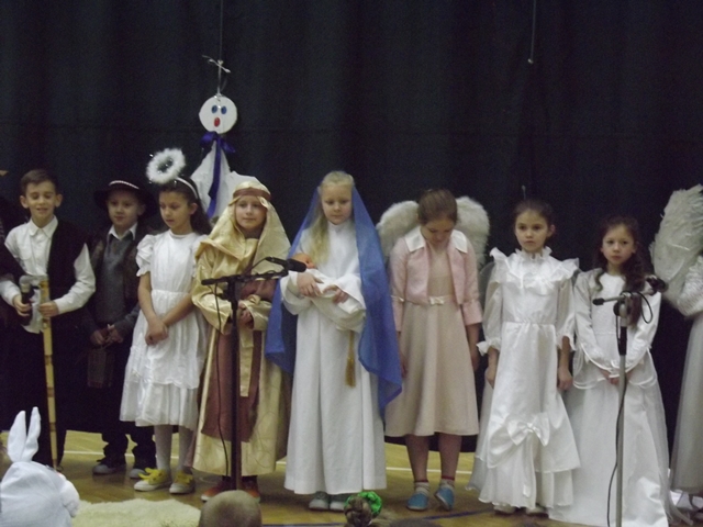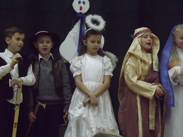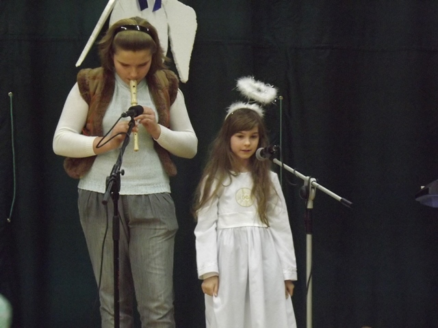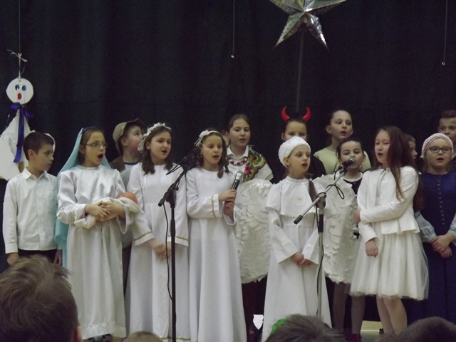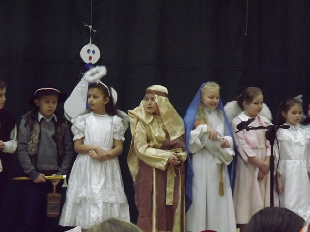 W dniu 15 stycznia w naszej szkole odbył się „Szkolny Przegląd Kolęd”, w którym wzięły udział wszystkie klasy szkoły podstawowej i gimnazjum. Do tej pory nasze spotkania miały charakter konkursu. W tym roku postanowiliśmy, że wykonawcy zaprezentują się w innej formule, która być może przyczyni się do ograniczenia tremy wśród występujących. Utwory nie były w związku z tym oceniane. Założenie okazało się bardzo trafne. Zasadniczą ideą tego przeglądu było wspólne kolędowanie. Publiczność mogła włączać się do śpiewu podczas występów. W przeglądzie, tak jak w latach poprzednich, wystąpiły zespoły małe, klasowe, soliści oraz wysłuchaliśmy prezentacji instrumentalnych. Nasi szkolni artyści grali na fletach, klarnetach, gitarach oraz organach. Wykonawcy również pięknie prezentowali się, w specjalnie przygotowanych na tę okoliczność, strojach.