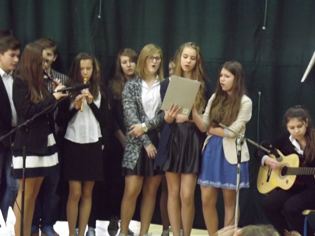 Konkurs zorganizował nauczyciel muzyki Zbigniew Kolber przy dużej pomocy samorządu szkolnego oraz nauczycieli wychowawców.