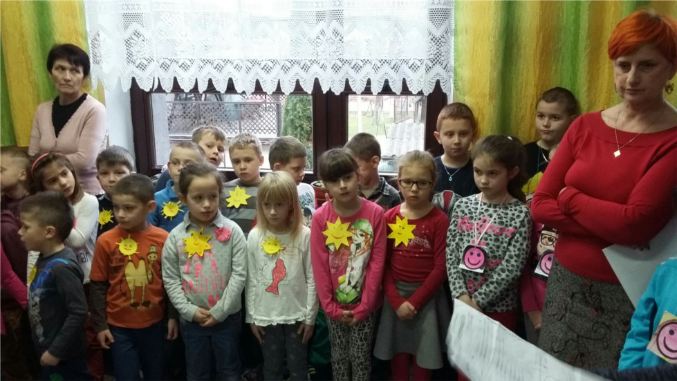 Dodatkowo każda klasa zrobiła oryginalne, własnego pomysłu plakietki ( z uśmiechem, słoneczkiem, buźką), które nosiła przez cały tydzień.