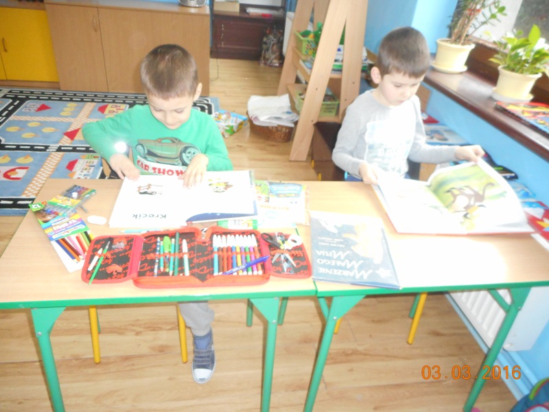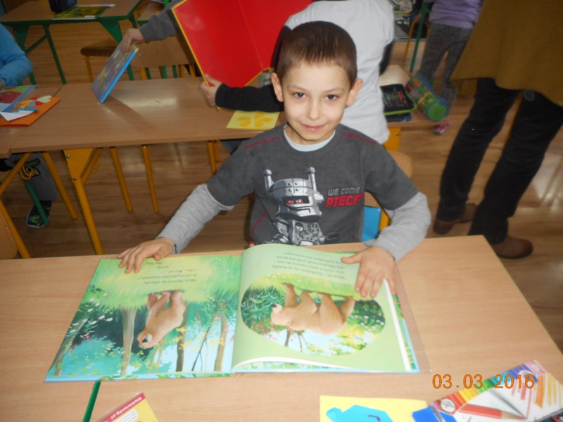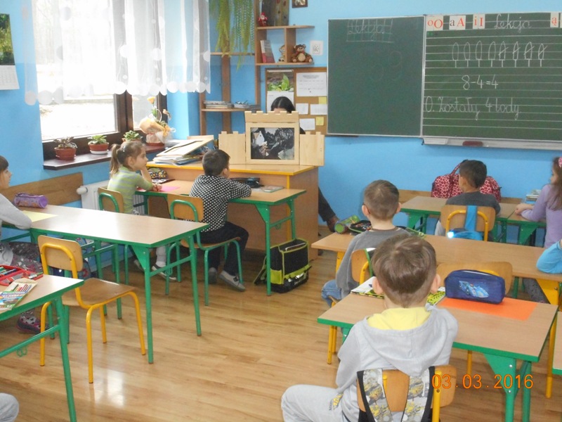 W czwartek 3 marca w klasie I odbyły się zajęcia biblioteczno-czytelnicze w ramach realizacji programu rządowego pt. „Książki naszych marzeń”, przeprowadzone przez panią Świergosz, która pracuje w gminnej Bibliotece Publicznej. Najpierw dzieci oglądały pięknie ilustrowane książki. Następnie wysłuchały opowieści teatrzyku „Kamishibai” („Z magicznej skrzynki”). Jest to technika opowiadania, czytania wywodząca się z Japonii, wykorzystująca kartonowe plansze z obrazkami i tekstem oraz drewnianą lub kartonową skrzynkę. Na zakończenie zajęć uczniowie wykonali ozdobne laurki. Pani prowadząca spotkanie zachęcała do częstego odwiedzania Biblioteki Publicznej w Choczni.