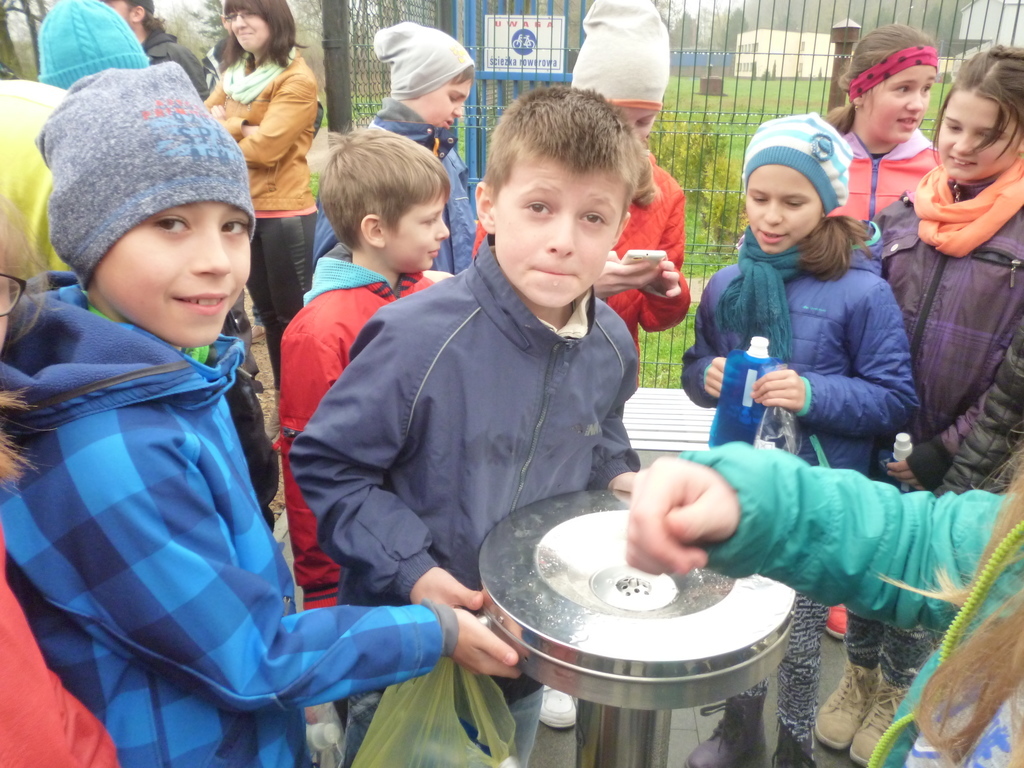 Uczniowie byli też świadkami otwarcia źródełka wody pitnej przy ścieżce rowerowej, którego dokonał Burmistrz Wadowic Mateusz Klinowski oraz Prezes Zarządu Alfred Karelus.