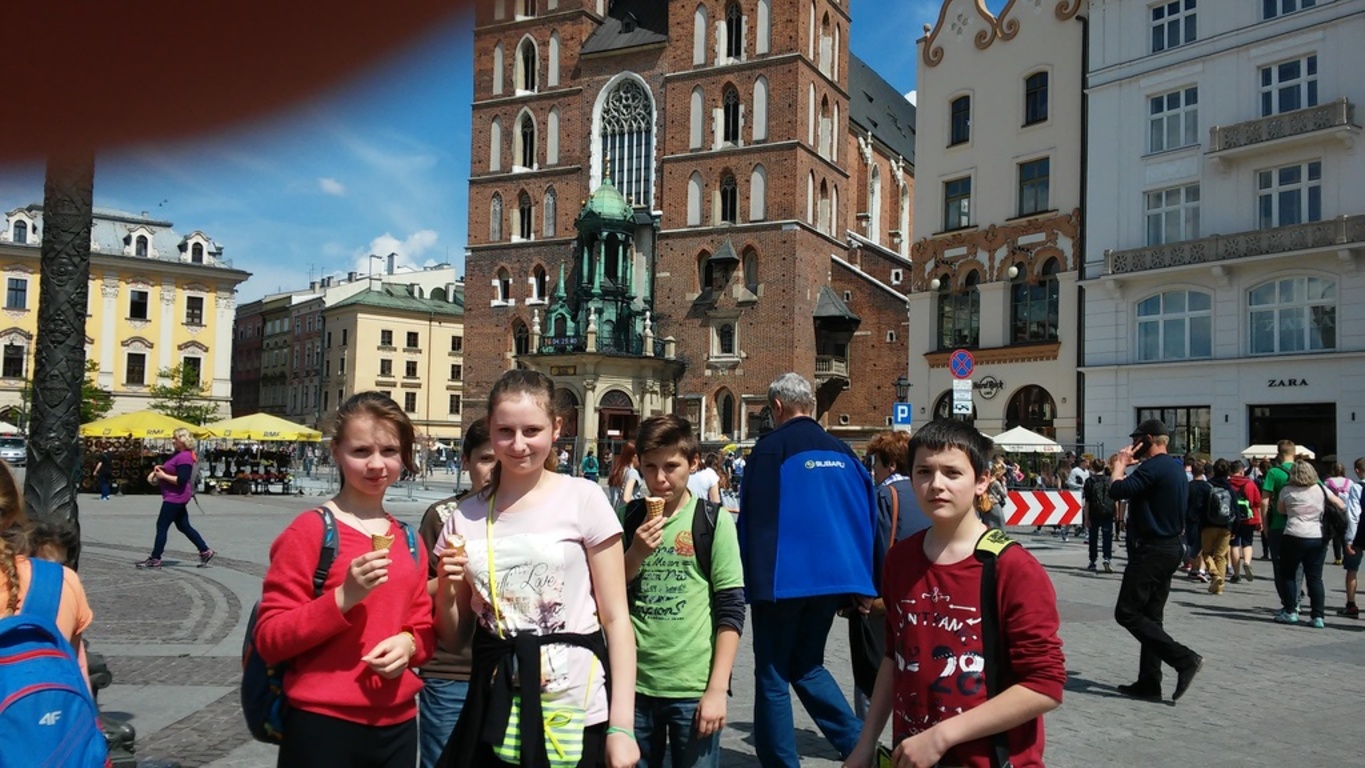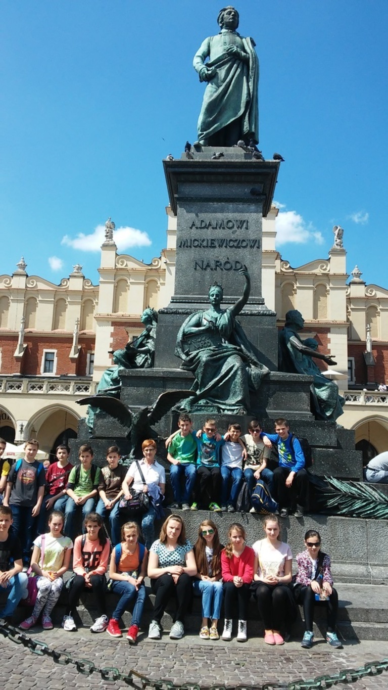 W środę, 11 maja 2016 r. uczniowie z klasy VI wraz z opiekunami- panią Martą Zolik i panią Bogumiłą Kowalczyk- wybrali się na klasową wycieczkę do Krakowa. Zwiedziliśmy Skarbiec i Zbrojownię na Wawelu /dzięki bardzo miłej pani przewodnik pochodzącej ze Lwowa dowiedzieliśmy się wielu ciekawych rzeczy z historii Polski w formie ciekawostek, o których nie można przeczytać w żadnych książkach/. Ze Wzgórza Wawelskiego przeszliśmy ulicą Grocką na Rynek, gdzie mieliśmy okazję zwiedzić Kościół Mariacki, Sukiennice oraz zakupić pamiątki. Dużą atrakcją dla wszystkich uczestników wycieczki było zwiedzanie Ogrodu Doświadczeń, w którym spędziliśmy 3 godziny. Mieliśmy szczęście bo dopisała nam piękna, słoneczna pogoda. Uczestniczyliśmy w warsztatach „W poszukiwaniu szkatułki”, gdzie mieliśmy możliwość za pomocą mapy i kompasu szukać miejsc, w których ukryte były zadania do wykonania. Taka forma zabawy terenowej przypadła wszystkim do gustu i, jak będzie można zobaczyć na zdjęciach, zaangażowanie uczestników było ogromne. Nie było osoby, która by się nudziła. Panie przewodniczki podzieliły klasę na dwa zespoły i grupach 10- osobowych przeprowadziły ciekawe zajęcia, których punktem finałowym było odnalezienie „skarbu”. Obie grupy pracowały z zapałem i zostały pochwalone przez panie prowadzące za spryt, umiejętnośc i kulturalne zachowanie. Na zakończenie wycieczki poszliśmy wszyscy na lody i zadowoleni wróciliśmy wieczorem do domu. Uczniowie jednogłośnie stwierdzili, że była to ich najlepsza wycieczka klasowa! To bardzo istotne aby na wycieczkach szkolnych była pełna frekwencja bo jest to jedna z niewielu okazji, kiedy uczniowie i nauczyciele mogą się ze sobą zintegrować i zapomnieć o kartkówkach, sprawdzianach i odpytywaniu przy tablicy.