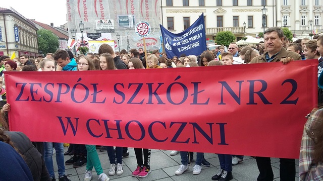 Tegoroczne spotkanie szkół im. Jana Pawła II odbyło się w nowej oprawie, mniej oficjalnego, a bardziej radosnego świętowania. Przybyło na nie 50 delegacji z całej Polski – około 1900 uczestników. Swą obecność zaznaczyły także szkoły gminy Wadowice oraz powiatu wadowickiego.