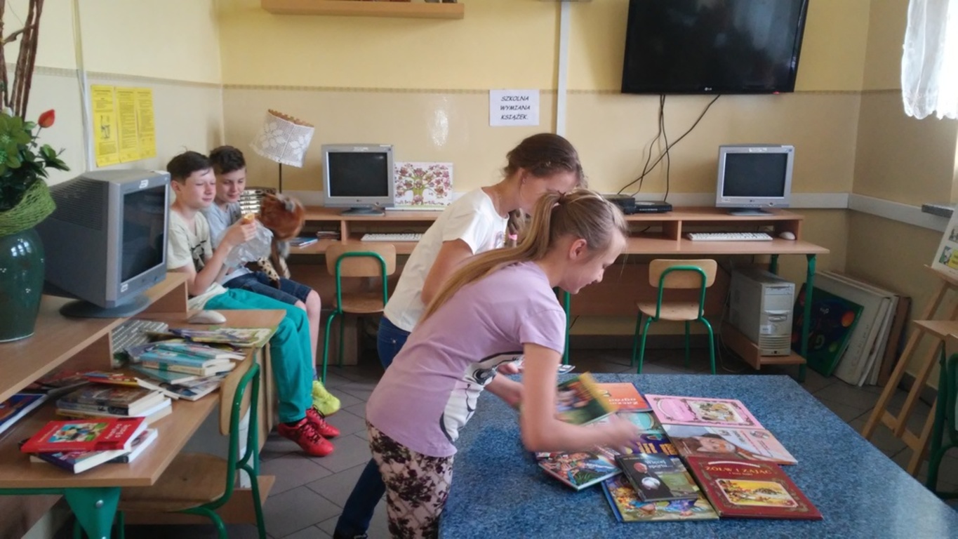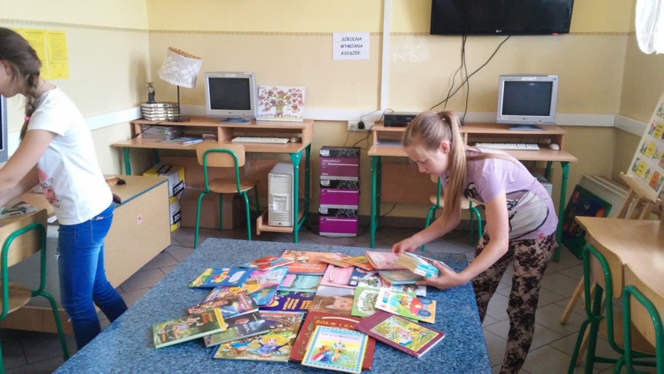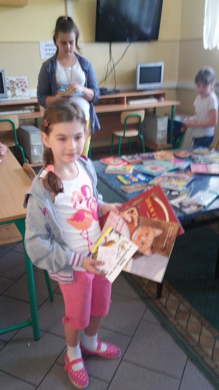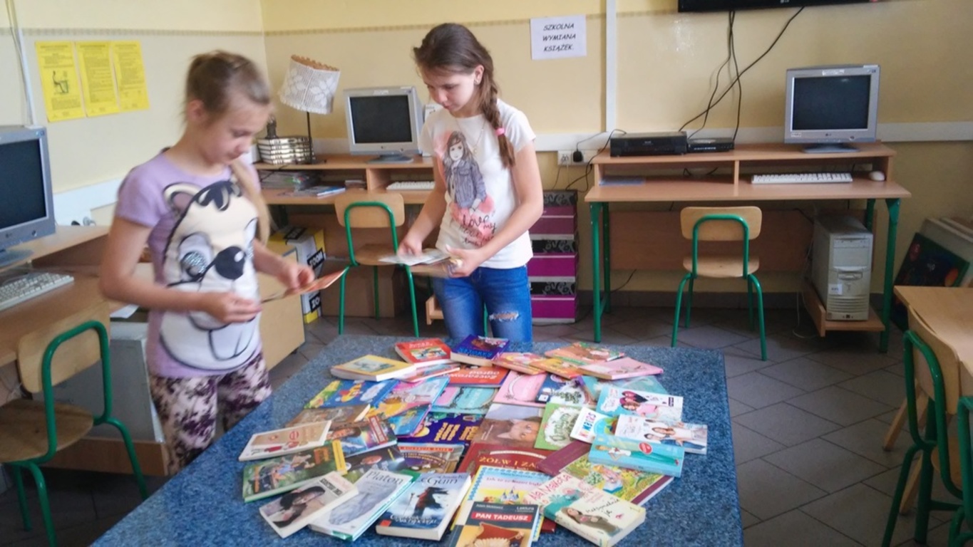 W środę, 15 czerwca 2016 roku w naszej bibliotece miała miejsce kolejna akcja szkolna promująca czytelnictwo – „Wymiana książek między sobą”. Uczniowie przez okres dwóch miesięcy przynosili do biblioteki swoje prywatne książki, które już przeczytali i chcieli je wymienić na inne pozycje przyniesione przez dzieci. To ciekawy sposób promowania czytelnictwa, który spotkał się z zainteresowaniem dosyć licznej grupy czytelników. Nad przebiegiem całej akcji czuwały uczennice z klasy VI – członkinie koła bibliotecznego. Doradzały niezdecydowanym, jaką książkę wybrać, tak aby wszyscy byli zadowoleni. Dzięki temu każdy uczestnik tego wydarzenia wyszedł z biblioteki z nową książką i uśmiechem na twarzy. Dziękujemy wszystkim, którzy zechcieli się podzielić swoimi książkami z innymi i życzymy wesołych wakacji z książką!!!