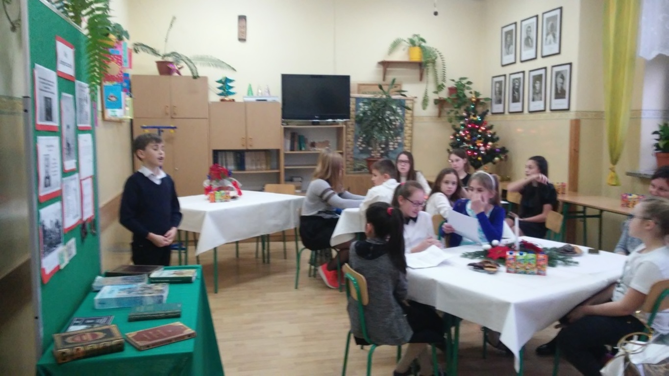 W związku z kończącym się rokiem 2016, który był ogłoszony Rokiem Sienkiewicza, w poniedziałek, 19 grudnia 2016 roku w naszej szkole miało miejsce spotkanie z prozą tego niezapomnianego pisarza, w którym uczestniczyli uczniowie z klasy V i VI szkoły podstawowej oraz I- III gimnazjum, a także zaproszeni goście: nauczycielka języka polskiego z ZS nr 1 w Choczni pani Barbara Tutaj, nauczyciel bibliotekarz z ZS nr 1 w Choczni pani Dorota Ruła i przedstawiciel Rady Rodziców pani Dorota Chmiel. Gospodarzami spotkania była pani dyrektor ZS nr 2 w Choczni Małgorzata Bryndza wraz z polonistką panią Bogusławą Bąk i nauczycielem bibliotekarzem panią Bogumiłą Kowalczyk. Uczniowie przygotowali wybrany przez siebie fragment powieści bądź noweli Sienkiewicza, nauczyli się go na pamięć i zaprezentowali się przed zgromadzoną publicznością. Spotkanie miało charakter wieczornicy przy świecach, a dodatkowo wszystkim nam udzielił się klimat zbliżających się Świąt Bożego Narodzenia- pachnące pierniczki na stolikach nakrytych białymi obrusami, kolorowe lampki na choince i miła, serdeczna atmosfera. Wszystko to sprawiło, że czuliśmy się wyjątkowo i postanowiliśmy częściej spotykać się w takim gronie zacieśniając współpracę między sąsiadującymi szkołami z tej samej wsi. Na zakończenie ogłosiliśmy konkurs dla uczniów podsumowujący nasze spotkania z Henrykiem Sienkiewiczem, który rozstrzygniemy w już po Nowym Roku. Miłym gestem ze strony pań z ZS nr 1 w Choczni było wręczenie pamiątkowego upominku w postaci pieknej figurki sowy, która wzbogaci pokaźną już kolekcję w bibliotece szkolnej liczącą już około 50 figurek tych niezwykłych ptaków będących od lat symbolem wiedzy i mądrości