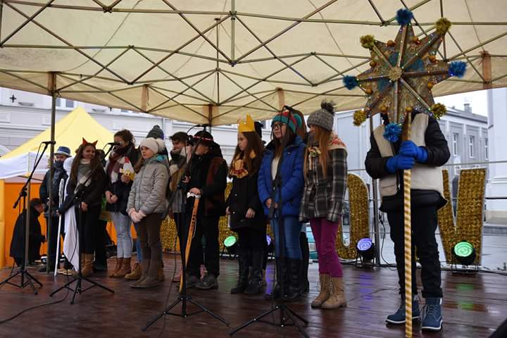 W dniu 19 grudnia uczniowie naszej szkoły wystąpili na wadowickim rynku. Prezentacja artystyczna odbyła się w ramach „Kiermaszu Świątecznego”. Najmłodsi artyści pod opieką pani Marii Michulec zaśpiewali dwa dynamiczne utwory o tematyce zimowo-świątecznej. Grupa taneczna, którą przygotowała pani Danuta Czapla, zatańczyła taniec góralski. Po niej wystąpili „kolędnicy”, którymi kierował ksiądz Robert Młynarczyk. Przedstawili oni wybrane fragmenty z jasełek. Występ ich przeplatany był kolędami i pastorałkami śpiewanymi przez zespół wokalny pod opieką pana Zbigniewa Kolbra. Za swój występ dzieci zebrały pochlebne recenzje od zgromadzonych na rynku widzów. Występ obejrzała też duża grupa rodziców, którym serdecznie dziękujemy.