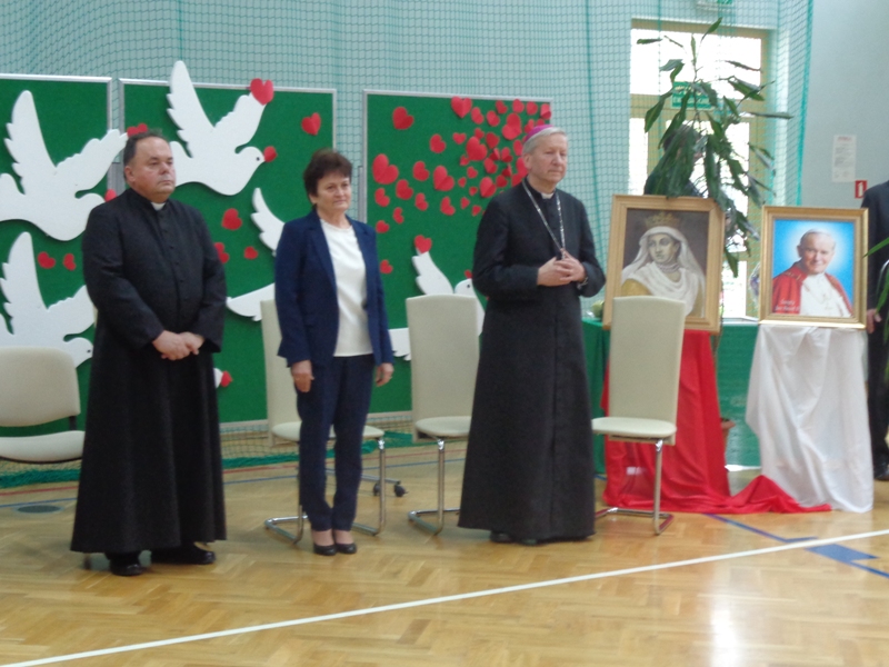 Dzisiaj naszą szkołę spotkał wielki zaszczyt. Odwiedził nas Ksiądz Biskup Jan Zając. Było to wielkie przeżycie dla nas wszystkich. Po krótkiej chwili oczekiwania, wszyscy zebrani na sali: młodzież, grono pedagogiczne, rodzice z radością powitali gości brawami. Księdzu Biskupowi towarzyszył Ksiądz Proboszcz.