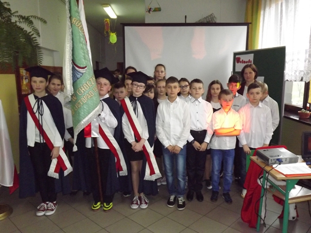 W czwartek 27 kwietnia nasza szkoła uczciła święta majowe 1-3 maja. Wszyscy przyszli ubrani odświętnie a klasa 5 wraz z wychowawcą przedstawiła przygotowany apel. W czasie apelu był obecny poczet sztandarowy, odśpiewano hymn państwowy oraz mazurek Trzeciego Maja. Apel zakończył się recytacją wierszy: A. Słonimskiego "Polska" i W. Szymborskiej "Gawęda o miłości do ziemi ojczystej".