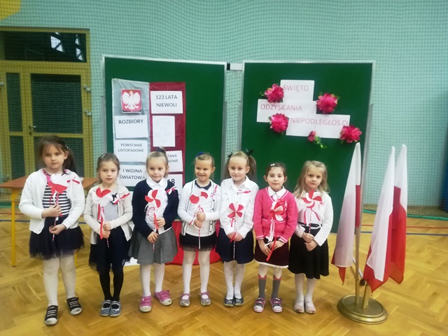 Również w naszej szkole pamiętamy o tym ważnym dla nas wszystkich wydarzeniu. Uczniowie z klasy III Gimnazjum przygotowali z tej okazji uroczysty apel, podczas którego przedstawili długą drogę Polski prowadzącą do odzyskania wolności. Nuciliśmy też pieśni patriotyczne śpiewane przez szkolny chór. Uczestnicy uroczystej akademii w skupieniu słuchali swoich kolegów i koleżanki, nawet ci najmłodsi, mimo że temat był trudny i nie zawsze dla nich zrozumiały.