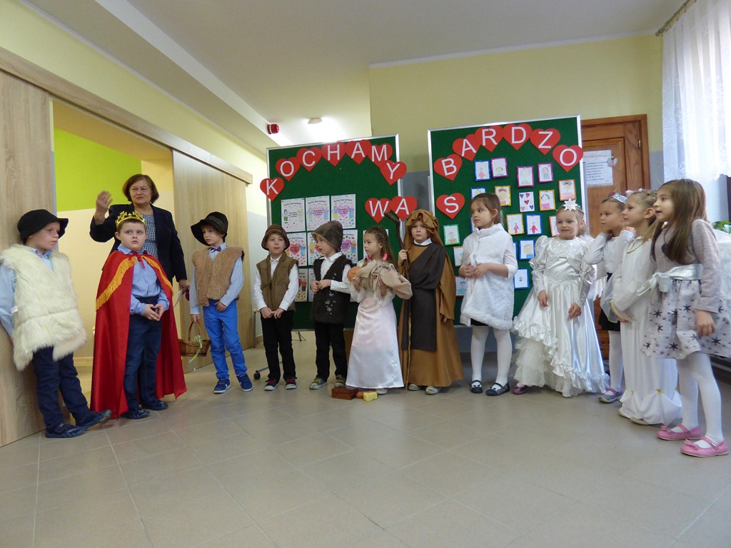 Dnia 27 stycznia dzieci z grupy „Sowy” gościły w przedszkolu swoje babcie i dziadziusiów. Przygotowaliśmy z tej okazji Jasełka oraz wiersze i piosenki dla naszych gości. Była trema, ale szybko minęła, kiedy usłyszeliśmy brawa i zobaczyliśmy uśmiechy na twarzach babć i dziadków. Obdarowaliśmy naszych gości laurkami, portrecikami oraz malowanymi szklaneczkami. Później był czas na rozmowy, przytulanie, wspólne zdjęcia i słodki poczęstunek. Zapraszamy za rok!