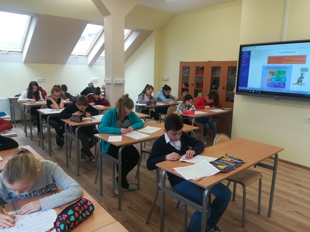 15 marca aż sześćdziesięciu pięciu uczniów naszej szkoły wzięło udział w Międzynarodowym Konkursie Matematycznym KANGUR. Uczniowie pisali test w 4 kategoriach wiekowych: Maluch - klasy 3 i 4, Beniamin - klasy 5 i 6, Kadet - klasa 7 i 2 gimnazjum oraz Junior - klasa 3 gimnazjum. Wszyscy rozpoczęli test o godzinie 9:00 i dzielnie główkowali przez 75 minut. Teraz wszyscy z niecierpliwością czekamy na wyniki! Gratulujemy wszystkim odważnym, którzy dzielnie podjęli to matematyczne wyzwanie!