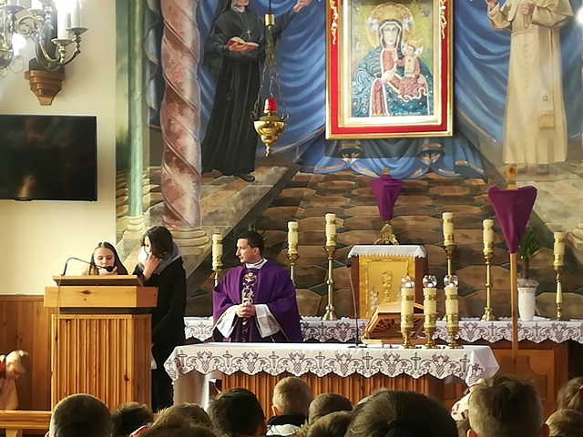 W dniach 19-21 marca uczniowie i nauczyciele naszej szkoły uczestniczyli w rekolekcjach wielkopostnych. W tym czasie wysłuchaliśmy konferencji ojca Jerzego, który zachęcał nas do życia według chrześcijańskich wartości, podkreślał znaczenie przebaczenia i miłosierdzia.