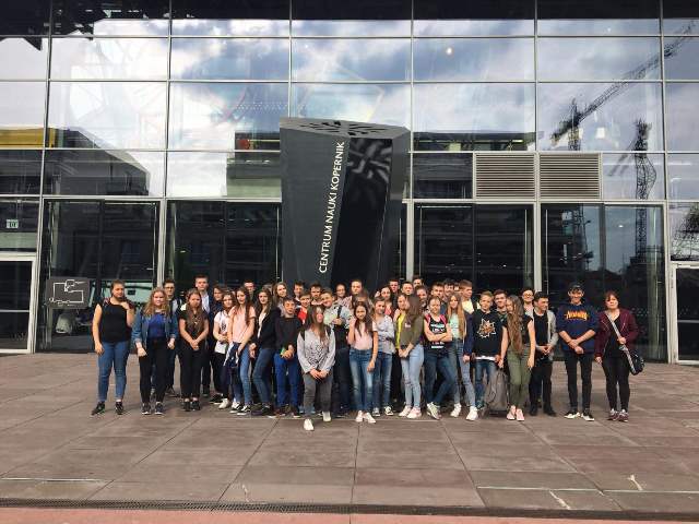 24 kwietnia 2018r. 47 uczniów naszej szkoły będących uczestnikami projektu Rozwój kompetencji kluczowych wśród uczniów szkół podstawowych i gimnazjalnych w Gminie Wadowice wzięło udział w wycieczce do Centrum Nauki Kopernik w Warszawie. Aby dotrzeć do celu podróży, uczniowie, pod opieką trzech opiekunów: Pani Jolanty Kasperek, Renaty Ryś i Angeliki Kowali, wyruszyli w podróż już o godz. 5:00. Po 6 godzinach jazdy autokarem grupa młodych naukowców dotarła wreszcie do Centrum Nauki Kopernik. Uczniowie w trakcie 5 godzin mogli indywidualnie obejrzeć wszystkie "eksponaty" naukowe i osobiście sprawdzić działanie praw fizyki w życiu codziennym. Bez względu na swoje zainteresowania każdy znalazł coś, co go szczególnie zainteresowało, zaintrygowało czy zmusiło do zmiany myślenia. Po indywidualnym czasie zwiedzania, uczniowie podzieleni na 4 grupy, w zależności od zainteresowań, brali ucział w warsztatach: chemicznych "Analityczne rozterki czyli czemu Stefan skończył źle?", biologicznych "Pokaż, kotku, co masz w środku", fizycznych "Obudzić Krakena" oraz z robotyki "Pod ciśnieniem". Dwugodzinna praca w labolatoriach zachwyciła każdego. Dziś niestraszne już nikomu strzelanie z armaty, spotkanie z nicieniami, rozwiazywanie kryminalnych zagadek, analiza próbki z miejsca zbrodni czy projektowanie, montowanie i sterowanie układami zasilanymi sprężonym powietrzem. Swój pobyt w Centrum Nauki uczestnicy zakończyli obiadem, po którym udali się do autokaru, by wyruszyć w podróż do domu. To byla niesamowita naukowa przygoda!
