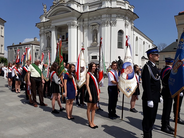 W dniu 3 maja delegacja uczniów ze szkoły podstawowej i gimnazjum, wraz ze sztandarami tych szkół, wzięła udział w uroczystej mszy z okazji Święta Niepodległości w bazylice Ofiarowania NMP w Wadowicach. Uczniom towarzyszyła dyrekcja szkoły i opiekunka samorządu uczniowskiego. Reprezentacja szkoły przeszła wraz z z innymi delegacjami pod pomnik "12 Pułku Piechoty", gdzie uroczyście złożono kwiaty. Mimo bardzo gorącej aury nasi uczniowie prezentowali się znakomicie i wytrwali do końca.