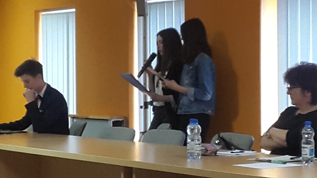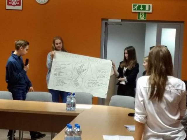 Dnia 15.05.2018 roku uczniowie klasy III gimnazjum - Arek Guzdek, Basia Warchał i Wiktoria Bryndza - przedstawiciele Samorządu Uczniowskiego uczestniczyli w spotkaniu zorganizowanym przez Młodzieżową Radę Miejską w Wadowicach. Spotkanie miało charakter konsultacyjno – integracyjny. W spotkaniu uczestniczyły zespoły Samorządów Uczniowskich ze szkół gminy Wadowice wraz z opiekunami. Po krótkiej prelekcji na temat tego jak powinien prawidłowo działać Samorząd, uczniowie uczestniczyli w zabawach integrujących zespoły. Pracując w grupach tworzyli wymarzone Samorządy, sylwetkę idealnego przewodniczącego Samorządu. Delegaci szkół dzieli się i prezentowali działalność swoich samorządów. Było wiele pomysłów i działań, które zachęcają do dalszej współpracy i dzielenia się, aby stale ulepszać działania samorządów. Na koniec organizatorzy spotkania zachęcili i zaprosili do dalszych spotkań, które będą się odbywały w niedalekiej przyszłości.