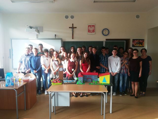 Dnia 24 maja w godzinach popołudniowych odbyła się prezentacja projektów edukacyjnych, w których w tym roku brała udział klasa II gimnazjum. Uczniowie uczestniczyli w projekcie matematycznym i chemicznym. Pracowali w grupach 5 lub 6-osobowych pod opieką dwóch nauczycieli p. Jolanty Kasperek oraz Renaty Ryś. W rezultacie uczniowie zaprezentowali wyniki swojej pracy nad projektami z matematyki: „Skala w rzeczywistości, rzeczywistość w skali” oraz „Matematyka jest wszędzie” i chemicznymi „Sól cenniejsza niż złoto” oraz „Kolory w życiu codziennym”. Obecni goście: pan wicedyrektor, nauczyciele, rodzice gimnazjalistów oraz sami uczniowie wysłuchali krótkich prezentacji na temat m.in. występowania skali w życiu codziennym, wszechobecności matematyki, wartości soli czy też barw, które nas otaczają w codzienności i nauce. Ponadto zobaczyli modele Big Bena oraz naszej szkoły wykonane w skali, oglądnęli autorski film pt. „Matematyka jest wszędzie”, uczestniczyli w doświadczeniu jak powstaje sól oraz kryształy, eksploduje wulkan czy też barwią się kwiaty, które wstawimy nie do wody ale atramentu. To naukowe miłe popołudnie zakończył poczęstunek, podczas którego smacznym zaskoczeniem okazały się różnobarwne muffiny przygotowane przez uczestników projektu. Każdy z gości wyszedł też obdarowany pachnącym musującym prezentem autorstwa młodych chemików. Uczestnicy projektu udowodnili w tym roku, że nauka może być naprawdę przyjemną i fascynującą przygodą!