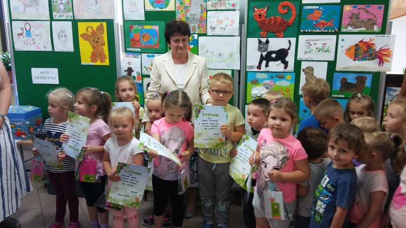 Równocześnie z akcją „Zbiórka dla Burka” organizowany był konkurs plastyczny MOJE ZWIERZĄTKO. Wpłynęły 53 prace z różnych grup wiekowych. Jury długo obradowało starając się przyznać nagrody. Okazało się to niemożliwe. Wszystkie prace były wyjątkowe. Organizatorzy podjęli decyzję o nagrodzeniu wszystkich uczestników. Było to możliwe dzięki sponsorom. Pani Dyrektor przyznała dodatkową nagrodę pracy, która szczególnie się Jej spodobała. Serdecznie dziękujemy uczestnikom i sponsorom nagród.