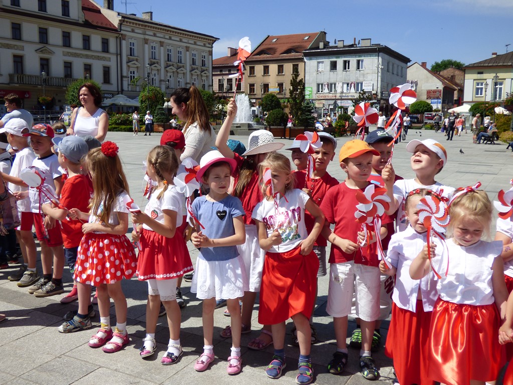 Podobnie jak w ubiegłym roku dnia 28 maja dzieci z grupy „Sowy” oraz przedstawiciele najmłodszych przedszkolaków „Wiewiórek” i „Jeżyków” z „Leśnego Przedszkola” wzięły udział w Europejskiej Paradzie Przedszkolaków na Rynku w Wadowicach. Parada jest częścią Projektu „Mobilność Kadry Edukacji Szkolnej”, którego celem jest propagowanie, między innymi wśród najmłodszych, idei poznawania krajów Unii Europejskiej i nauki języka angielskiego. Dzieci z naszego przedszkola reprezentowały Maltę. W czasie zajęć poznaliśmy ten kraj i mogliśmy pochwalić się wiedzą podczas parady. Dzieci ubrane w biało-czerwone stroje, z rekwizytami w barwach Malty prezentowały się znakomicie, podobnie jak pozostali uczestnicy. Przedszkolaków powitały organizatorki projektu, które zadając dzieciom pytania na temat reprezentowanego kraju, przedstawiały przedszkola uczestniczące w projekcie. Następnie wszystkie dzieci zaśpiewały piosenkę w języku angielskim i przemaszerowały w barwnym korowodzie wokół Rynku. Zaciekawieni turyści oraz przybyli rodzice przyglądali się paradzie oraz robili zdjęcia. Na zakończenie parady dzieci otrzymały drobne upominki.