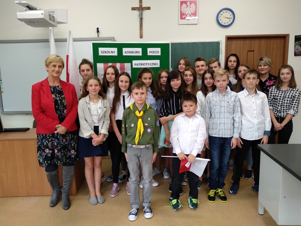 W poniedziałek 29 października odbył się Szkolny Konkurs Poezji Patriotycznej. Uczniowie recytowali najpiękniejsze wiersze związane z tematyką niepodległościową. Konkurs wpisuje się w uroczyste obchody 100-lecia Odzyskania Niepodległości. Jury w składzie: p. Bogumiła Kowalczyk, p. Grażyna Curzydło, p. Anna Wolanin rozstrzygnęło o poniższych wynikach w dwóch kategoriach wiekowych. Zwycięzcom serdecznie gratulujemy. Jedną z nagród będzie możliwość zaprezentowania swojego repertuaru na Przeglądzie Pieśni Patriotycznych 18 listopada w OSP w Choczni.