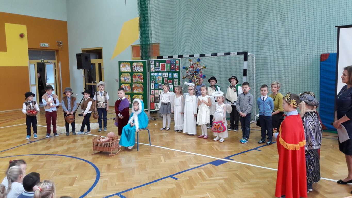 Uczniowie klasy O wraz z wychowawczynią p. Barbarą Kołodziejczyk przygotowali apel z okazji zbliżających się Świąt Bożego Narodzenia. Na początku obejrzeliśmy jasełka. Później posłuchaliśmy kolęd w wykonaniu klasy I. Następnie zaśpiewali uczniowie z klas VII, VIII i III gim., prezentując repertuar, który wykonywali kilka dni wcześniej na wadowickim rynku podczas wspólnego kolędowania.