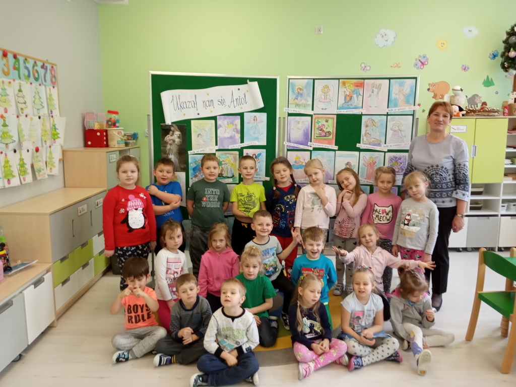 Boże Narodzenie tuż, tuż. „Wiewiórki” z wielkim zaangażowaniem podeszły do tych Świąt: wspólnie z paniami ubierały przedszkolną choinkę, kolorowały rysunki aniołów i zorganizowały wystawę „Ukazał nam się Anioł”, słuchały kolęd i pastorałek, przystrajały salę. W piątek odświętnie ubrani zaśpiewały piosenkę na apelu szkolnym. Po dzieleniu się opłatkiem i złożeniu sobie życzeń zasiadły do pięknie przystrojonego stołu. Miłym akcentem były odwiedziny Pani Dyrektor i kolędników z klasy 6a wraz z wychowawcą Panem Zbyszkiem Kolbrem. Aniołek przyniósł dzieciom prezenty pod choinkę. Do domu każde dziecko zabrało pięknego, własnoręcznie wykonanego aniołka i życzenia dla całej rodziny.