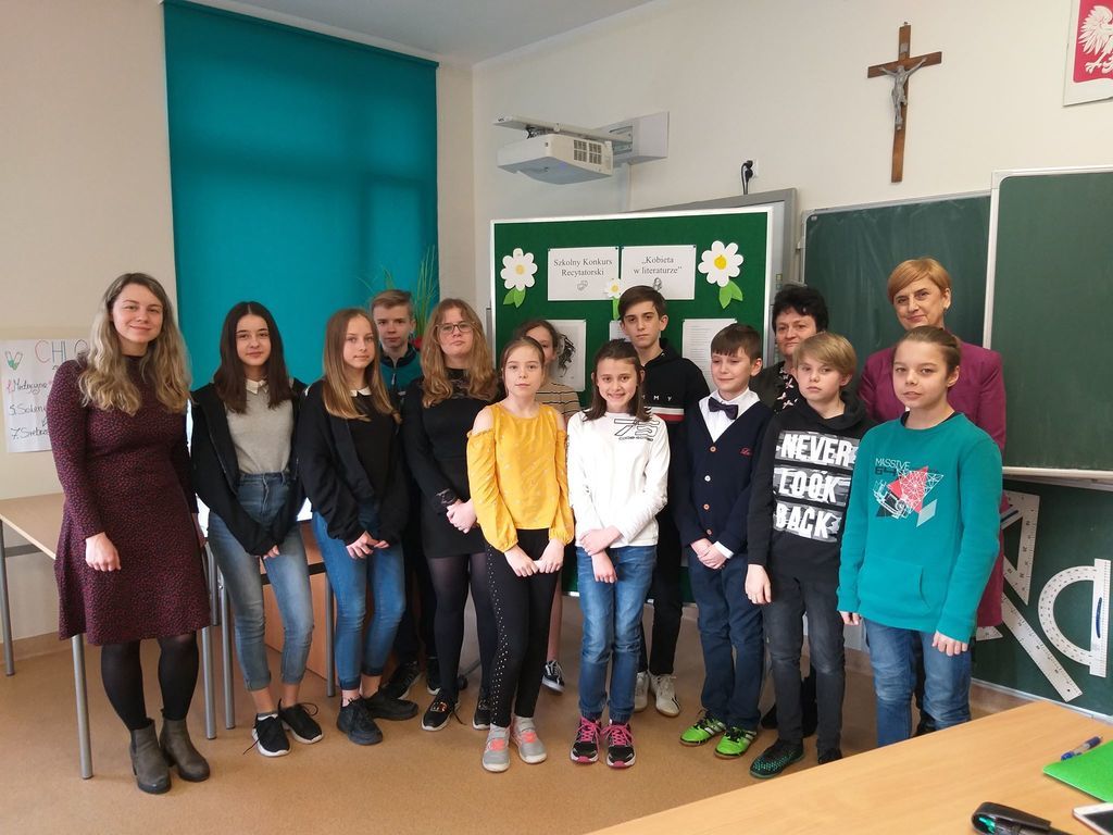 W piątek 6 marca odbył się Szkolny Konkurs Recytatorski pt. Kobieta w literaturze. Uczniowie recytowli najpiękniejsze wiersze o temtyce kobiecej. Jury w składzie: p. Bogumiła Kowalczyk i p. Anna Wolanin rozstrzygnęło o poniższych wynikach. Zwycięzcom serdecznie gratulujemy. Laureaci będą mogli zaprezentowac swój reperuar na szkolnym apelu z okazji Dnia Kobiet.