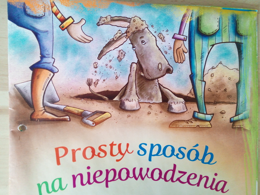 Dawno temu na odległej farmie pewien osiołek wpadł do studni. Przez kilka godzin żałośnie płakał, aż jego właściciel podjął próbę uratowania nieszczęśnika. Niestety, zakończyła się ona niepowodzeniem. Wrzeście chłop pomyślał, że właściwie zwierzę było już stare, a studnia sucha, więc i tak trzeba by ją było czymś przykryć. Robiąc rachunek zmysłów i strat, doszedł do wniosku, że nie opłacało się wyciągać osiołka. Następnie zebrał wszystkich sąsiadów i poprosił o pomoc przy zasypywaniu studni. Zgromadzeni chwycili za łopaty i zaczęli przysypywać ją ziemią. Osiołek od razu zorientował się, co się dzieje i zrozpaczony zaczął głośno płakać.