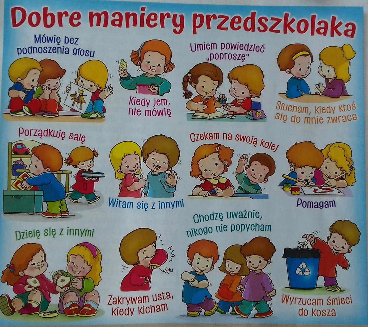 3 czerwca obchodziliśmy Dzień Savoir – Vivre'u. Znajomość dobrych manier przez dzieci ma wiele zalet. Przede wszystkim korzystnie wpływa na atmosferę w grupie przedszkolnej i relacje między rówieśnikami. Dobre maniery to nic innego jak umiejętność wyrażania życzliwości, szacunku wobec innych i panowania nad emocjami. To wiedza na temat reguł grzecznościowych obowiązujących w grupie rówieśniczej i w stosunku do osób dorosłych, ale również ich przestrzeganie.