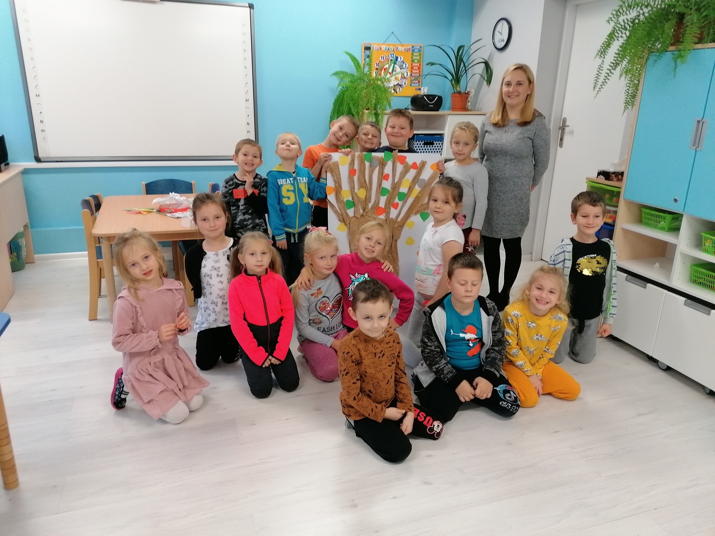 Na zakończenie spotkania z panią logopedą, dzieci wykonały wspólną pracę plastyczną pt. „Jesienne drzewo”. ZOBACZ ZDJĘCIA