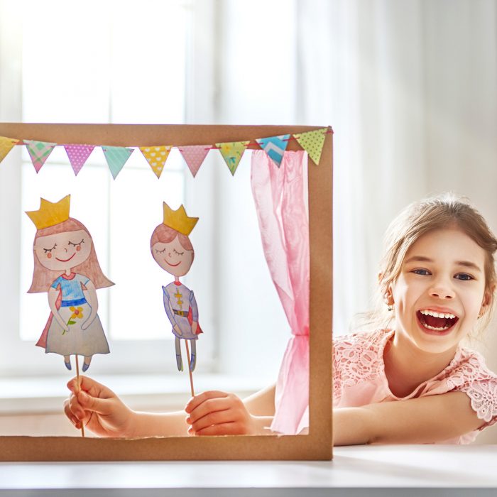 Przygotowanie spektaklu, w którym aktorami będą lalki bądź pacynki to doskonała okazja do świetnej i kreatywnej zabawy. Do wykonania kukiełek można wykorzystać na przykład skarpetki, na których flamastrem narysujemy buzie i ubranie. Sprawdzą się też guziki czy nieużywane ubrania. Twoje dziecko może też narysować postacie na kartce, które następnie wspólnie wytniecie i przykleicie do patyczków. Nic nie stoi na przeszkodzie, aby do obsady zaangażować zabawki twojej pociechy, takie jak lalki czy pluszaki. Prostą scenę wykonacie z pudełka po butach, w którym wytniecie dziurę. Przymocowana na sznurku bibuła bądź tkanina może pełnić funkcję kurtyny.