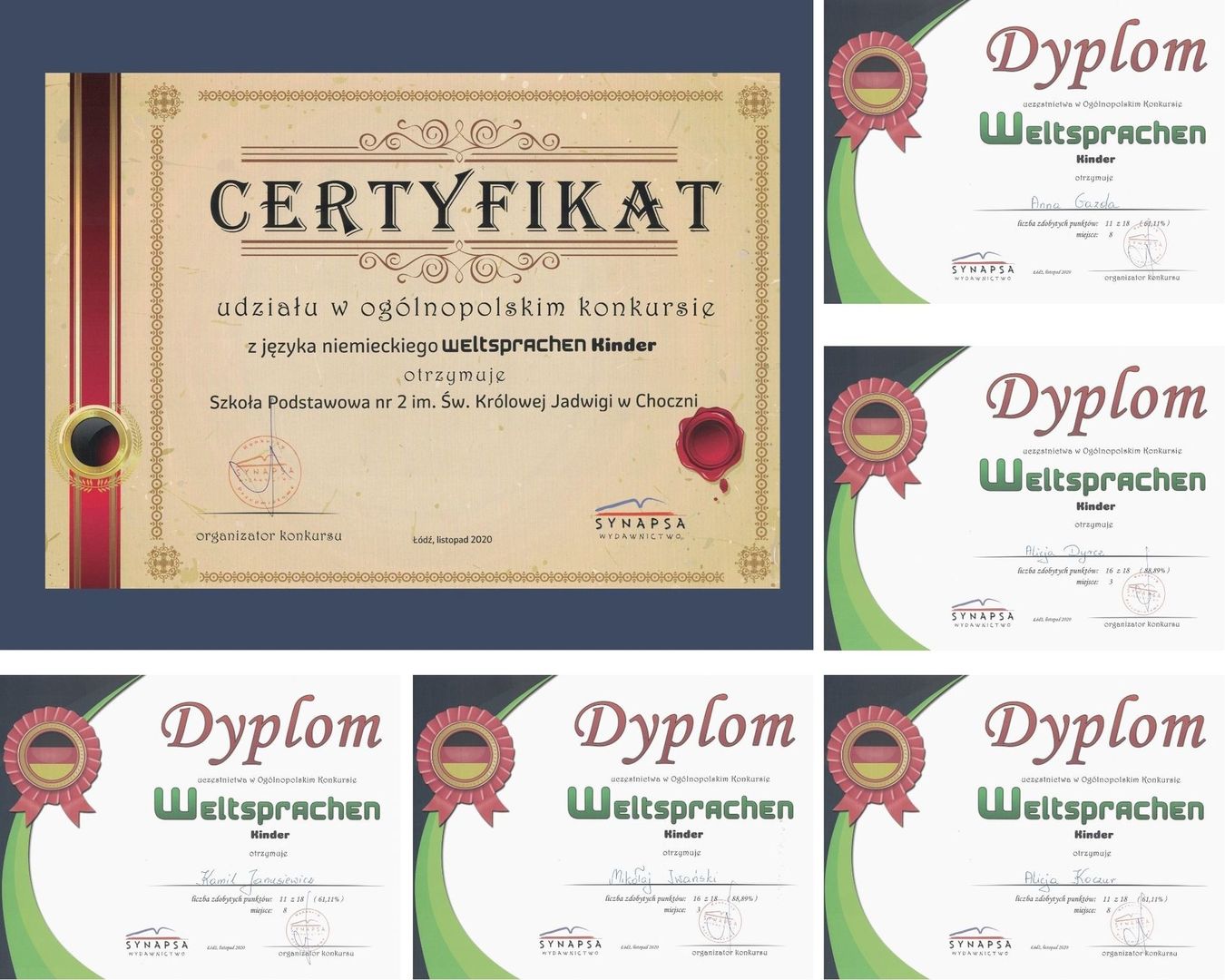 W listopadzie dwóch śmiałków z klasy VIIb i trzech z klasy VIII postanowiło sprawdzić swoją znajomość języka niemieckiego w ogólnopolskim konkursie Weltsprachen Kinder. Właśnie dotarły oficjalne wyniki i informujemy, że nasi uczniowie spisali się bardzo dobrze, zajmując wysokie miejsca. W konkursie wzięło udział ponad 2000 uczniów z całej Polski. Konkurs nie należy do prostych, ponieważ zawiera zadania na rozumienie tekstu słuchanego, czytanego oraz zadania gramatyczno-leksykalne. Edycja ta miała wyjątkowy charakter, gdyż ze względu na pandemię przeprowadzona została on-line. Gratulujemy wszystkim uczestnikom i już czekamy na kolejną edycję. Chętnych uczniów z klasy siódmej i ósmej zapraszam do udziału. Szczegóły u p. Doroty Wojewodzic.