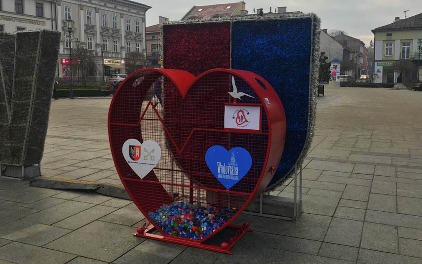 Na wadowickim rynku, a także pod Krytą Pływalnią "Delfin" postawiono metalowe serca na nakrętki z butelek. Wrzucać może je każdy, pieniądze z ich utylizacji trafią do potrzebujących.