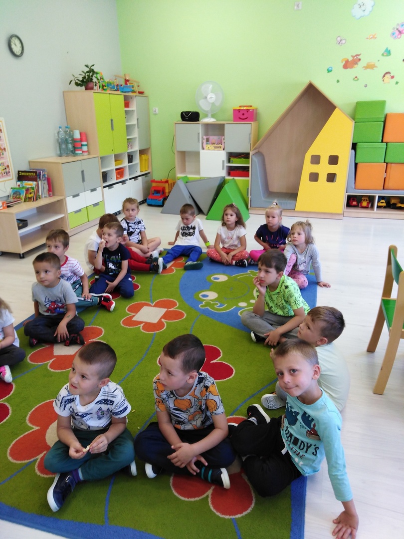 Wiewiórki pożegnały wakacje i przywitały nowy rok przedszkolny. Choć za oknem było jeszcze całkiem ciepło, to powoli czuliśmy zbliżającą się jesień. Bawiliśmy się w naszej sali, a każdą wolną chwilę spędzaliśmy na placu zabaw. Przypomnieliśmy sobie też zasady obowiązujące w naszej grupie i w przedszkolu.