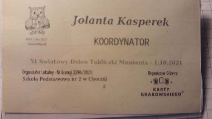 1 października 2021r, czyli w ostatni piątek, ochodzony był XI Światowy Dzień Tabliczki Mnożenia. Jak co roku, zorganizowaliśmy w naszej szkole konkurs tabliczki mnozenia. Czterech asystentów z klasy 8b przeprowadziło ten konkurs w klasach 3 - 8 i wyłoniło 5 zwycięzców. Otrzymali oni tytuł "Eksperta Tabliczki Mnożenia" są to : Marysia Banaś z klasy 7, Ala Dyrcz , Fabian Malina, Mikołaj Iwański z klasy 8b oraz Wiktor Szygieł z klasy 8a. Uczniowie ci w 2 etapach wykonali obliczenia bezbłędnie ( 1 etap: znajomość tabliczki mnożenia do 100, 2 etap: znajomość tabliczki mnożenia do 400). Nad wszystkim czuwał koordynator pani Jolanta Kasperek. Cieszymy się, że wśród nas jest tylu pasjonatów matematyki!