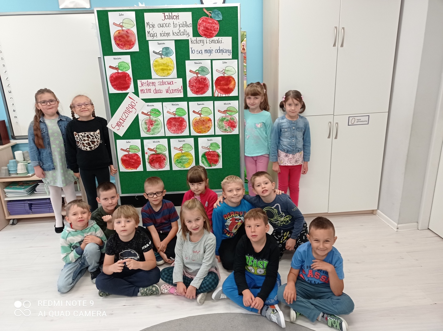11 października w zerówce było zdrowo i jabłkowo. Dzieci miały okazję poznać budowę drzewa - jabłoni. Zapoznały się z historią jabłka, jego gatunkami. Niektóre nawet posmakowały. Dowiedziały się o walorach smakowych, zdrowotnych, estetycznych jabłek. Wspólnie z Pania przygotowały sok jabłkowy z sokowirówki, suszone chipsy jabłkowe. Było nie tylko naukowo, ale i smakowo. Babcia Zuzi upiekła pyszną szarlotkę, popijaliśmy sok, zajadali chipsy.