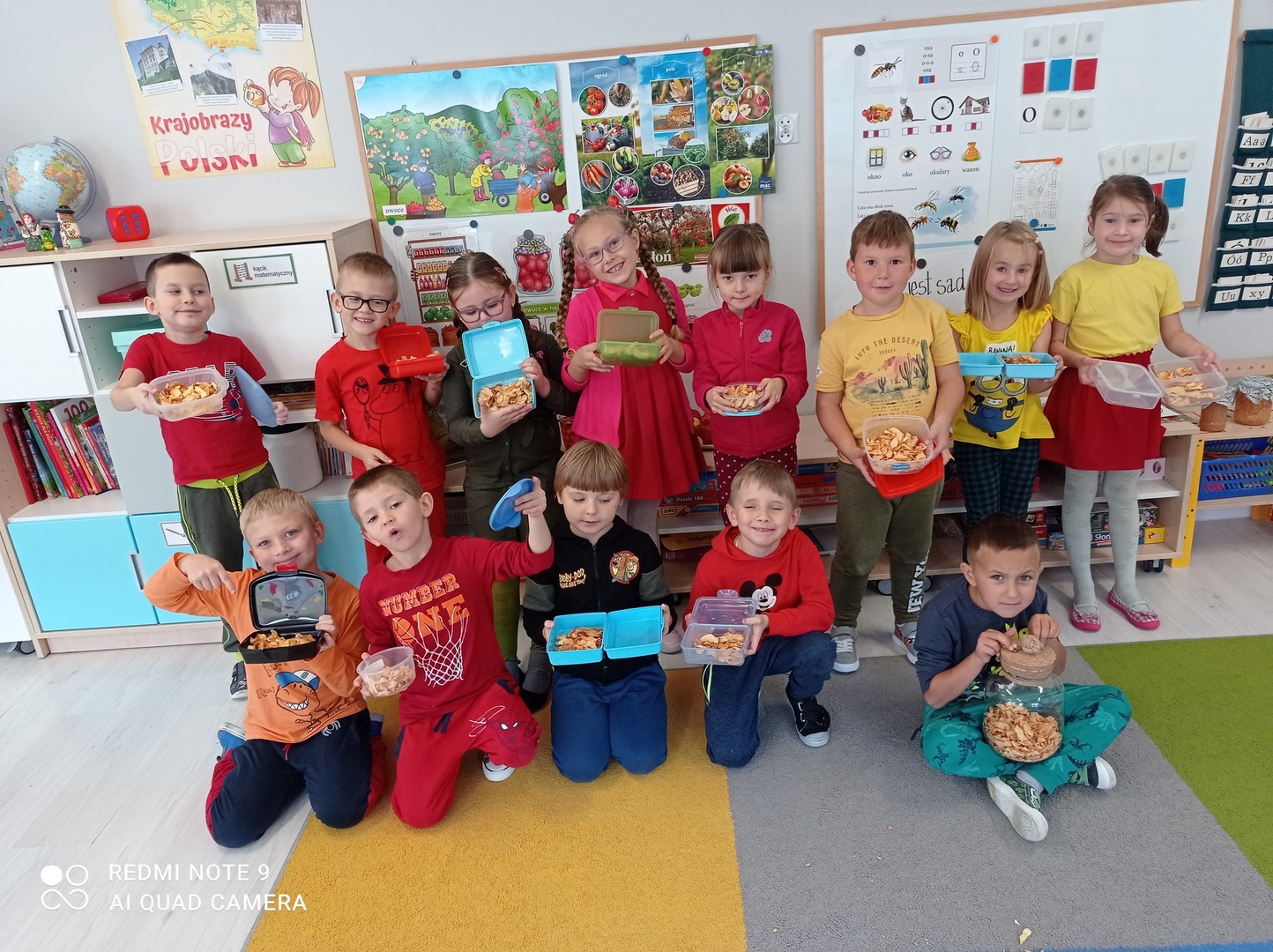 Lubimy przyjmować gości. Odwiedziła nas pani pedagog z ciekawymi zajęciami. Pani Edytka logopeda ćwiczyła z nami trudną wymowę. Najważniejszym gościem była Pani Dyrektor. Z okazji Święta Edukacji Narodowej przygotowaliśmy krótki program artystyczny. Pani Dyrektor się ucieszyła. Złożyliśmy życzenia wszystkim, którzy pracują w przedszkolu, opiekują się nami. Im właśnie DZIĘKUJEMY. Był też dzień jabłkowy smaczny i zdrowy.