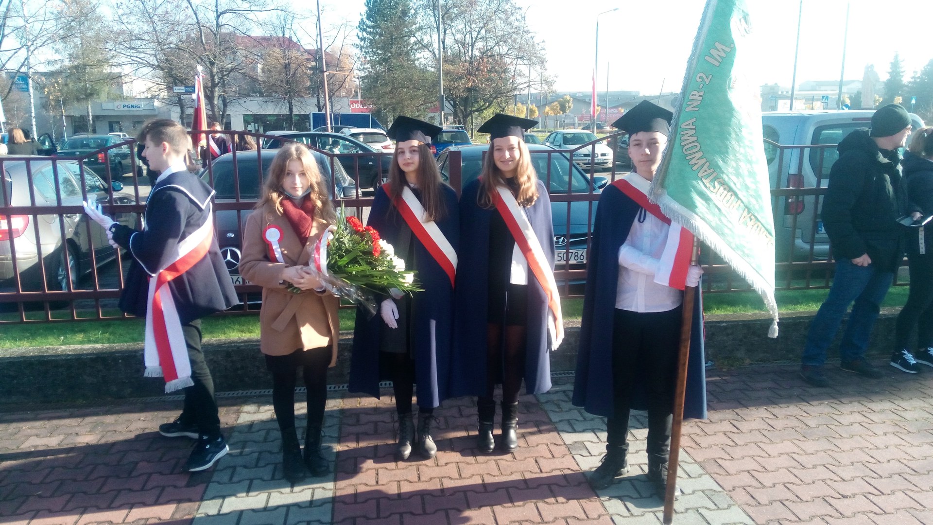 W dniu 11 listopada odbyły się w Wadowicach uroczystości związane z Narodowym Świętem Niepodległości. W obchodach uczestniczyła delegacja naszej szkoły pod przewodnictwem pani dyrektor Małgorzaty Bryndzy. Towarzyszyli jej opiekunowie samorządu uczniowskiego wraz z wiceprzewodniczącą oraz poczet sztandarowy. Obchody rozpoczęły się Mszą Świętą w Kościele pod wezwaniem Św. Piotra Apostoła. Po mszy wszyscy jej uczestnicy przemaszerowali pod pomnik Żołnierzy XII Pułku Piechoty, gdzie odśpiewano wszystkie 4 zwrotki Hymnu Państwowego oraz złożono kwiaty.