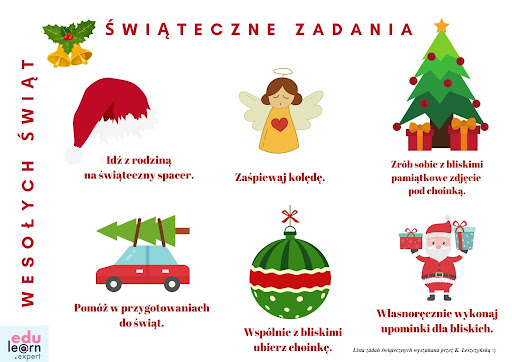 Za kilka dni Święta Bożego Narodzenia. To wyjątkowy, piękny czas. Wszystkim Uczniom naszej szkoły oraz ich Najbliższym przekazujemy najlepsze życzenia. Mamy nadzieję, że wybrane propozycje wprowadzą Was w ten świąteczny nastrój. Gdybyście nie wiedzieli w jaki sposób możecie się włączyć w przygotowania do Świąt, to zachęcamy do skorzystania z podpowiedzi z naszego Kalendarza Adwentowego /patrz zdjęcia/ Może jeszcze coś innego wpadnie Wam do głowy? Zachęcamy do działania!